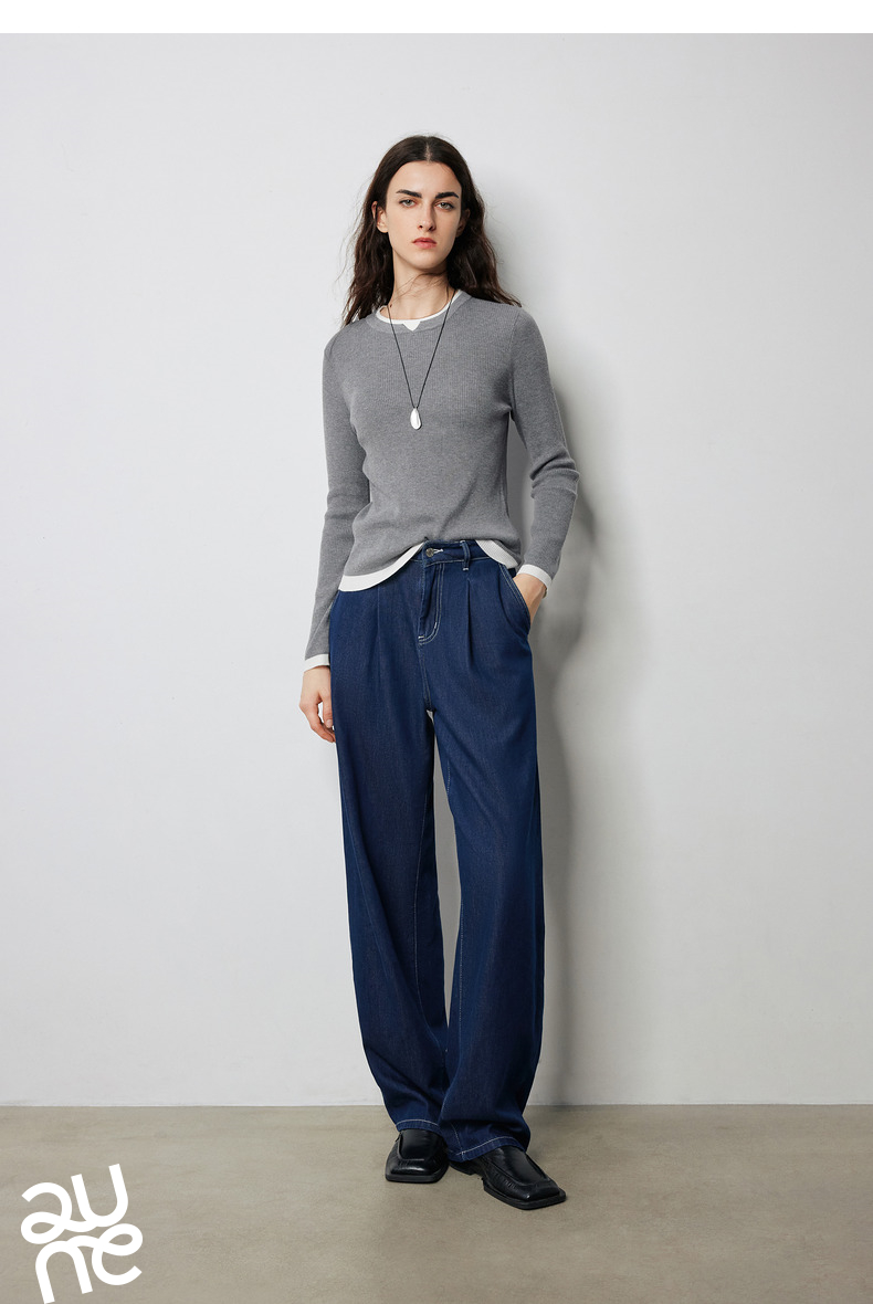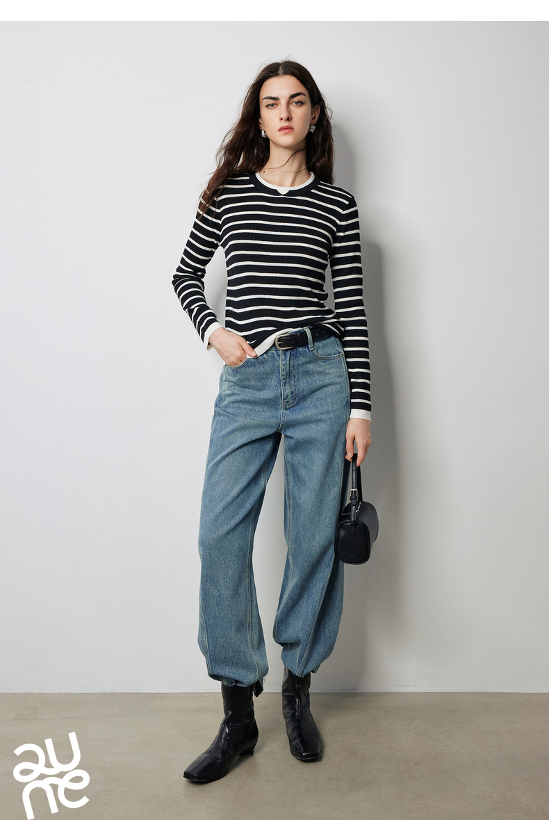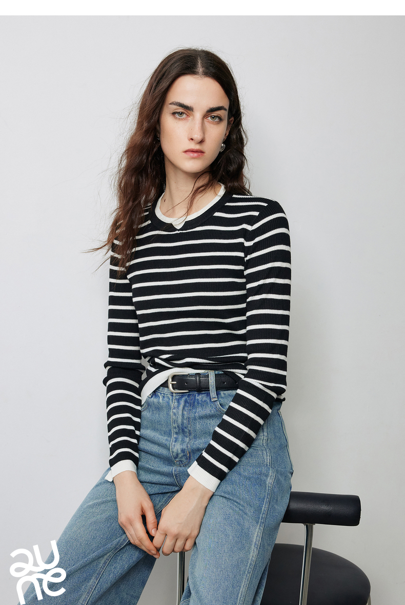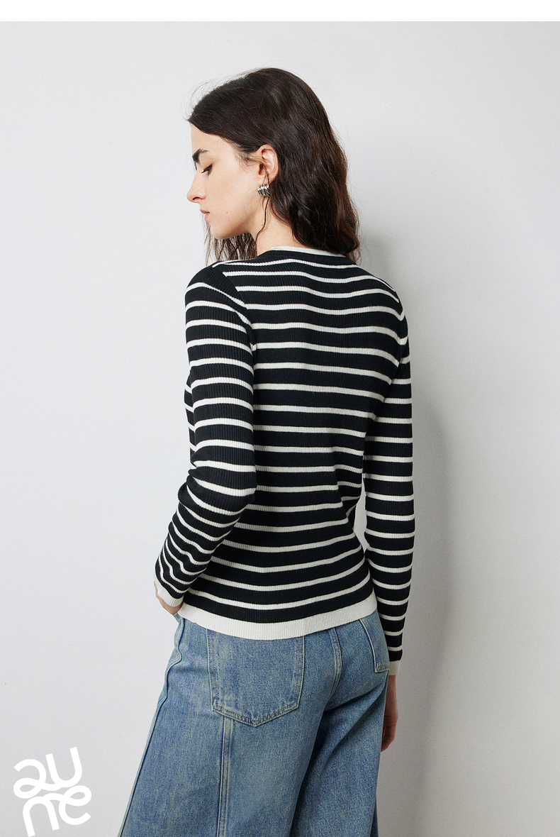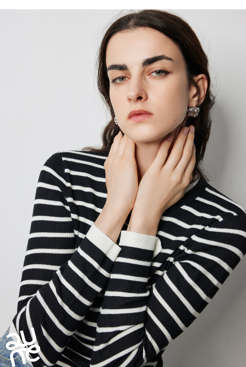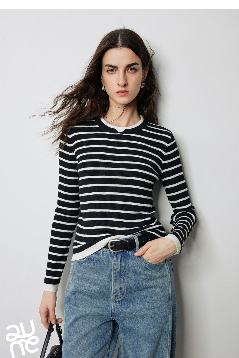 TOYOUTH初语羊毛混纺针织衫女假两件撞色修身打底衫8433013