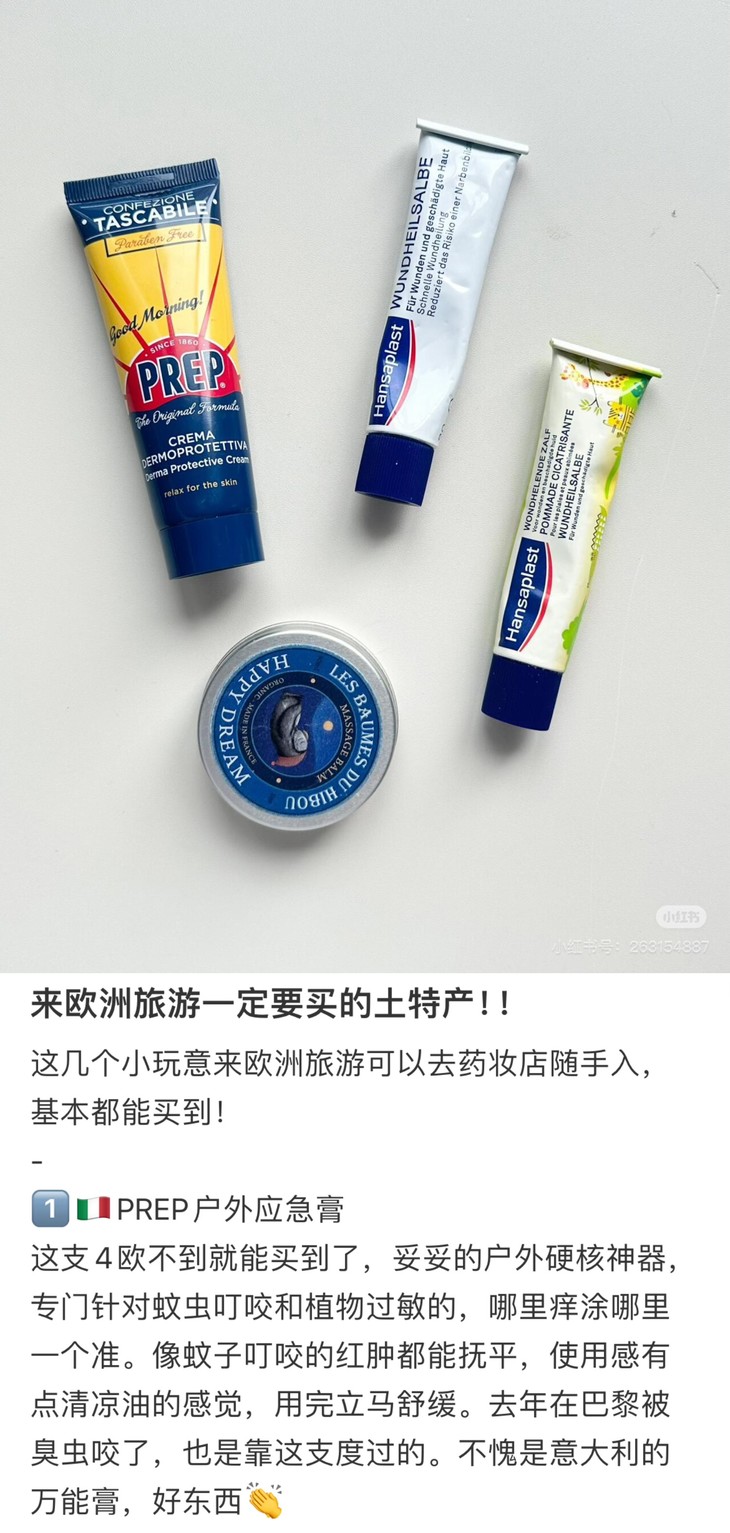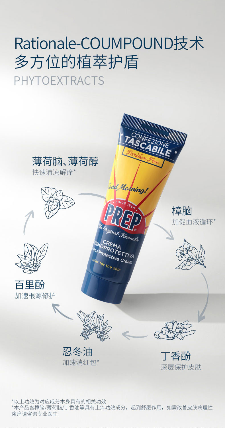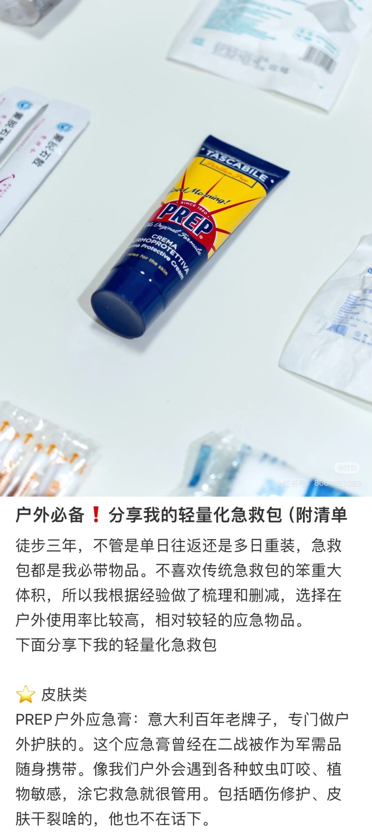 PREP在欧洲户外圈早就是口碑王炸了,有着百年历史的药妆背景,专为敏感肌和儿童研发护肤线,Coswel实验室的检测认证更不是盖的,闭眼入!它家的应急膏可以说是成分控的福音!Rationale-COMPOUND技术把植物精油玩出花来,薄荷脑+薄荷醇,清凉感拉满,消肿速度肉眼可见,还有百里酚、忍冬油这些修护大拿,晒后红到发紫的皮肤都能温柔安抚,丁香酚更是点睛,镇静效果绝了!