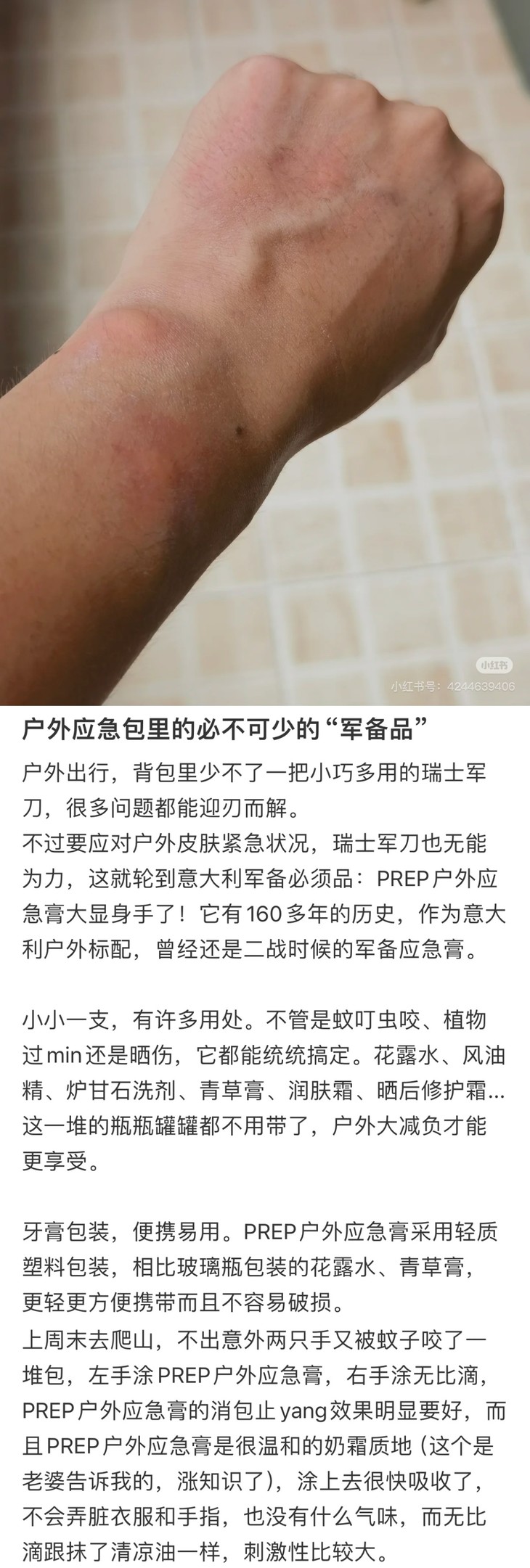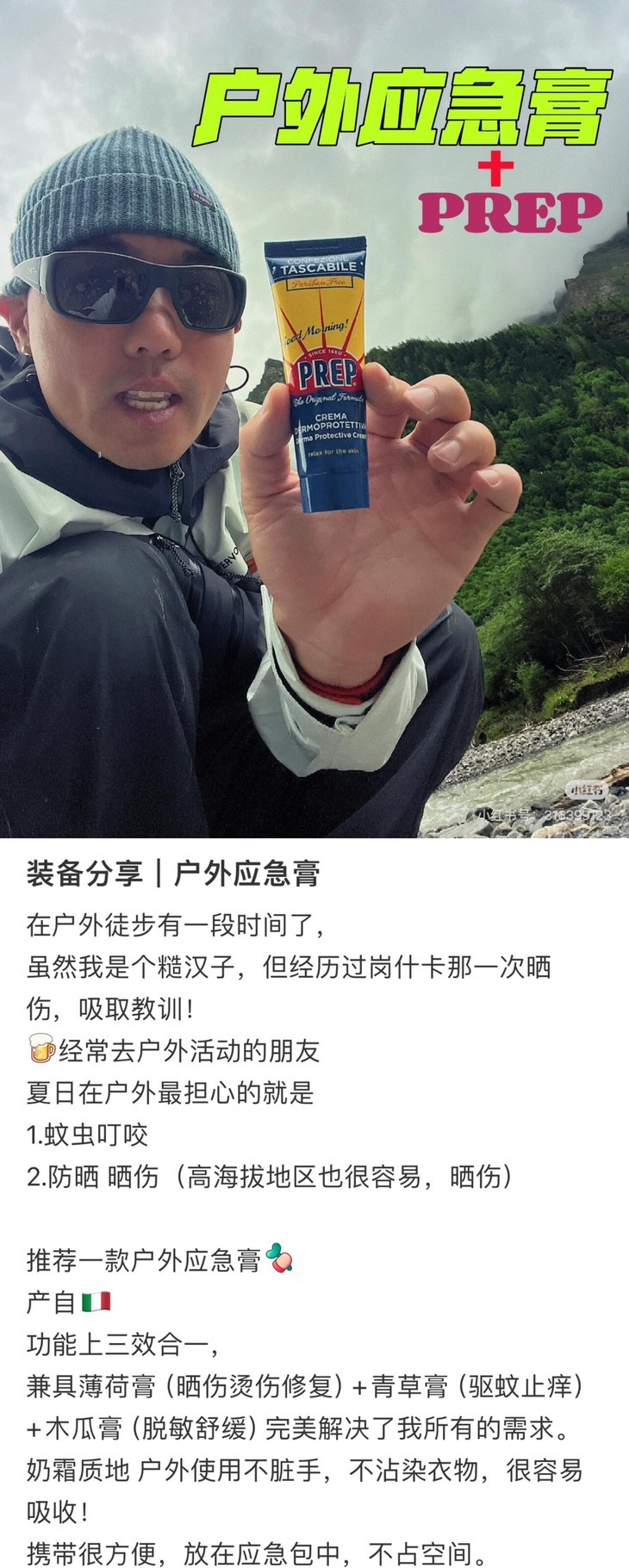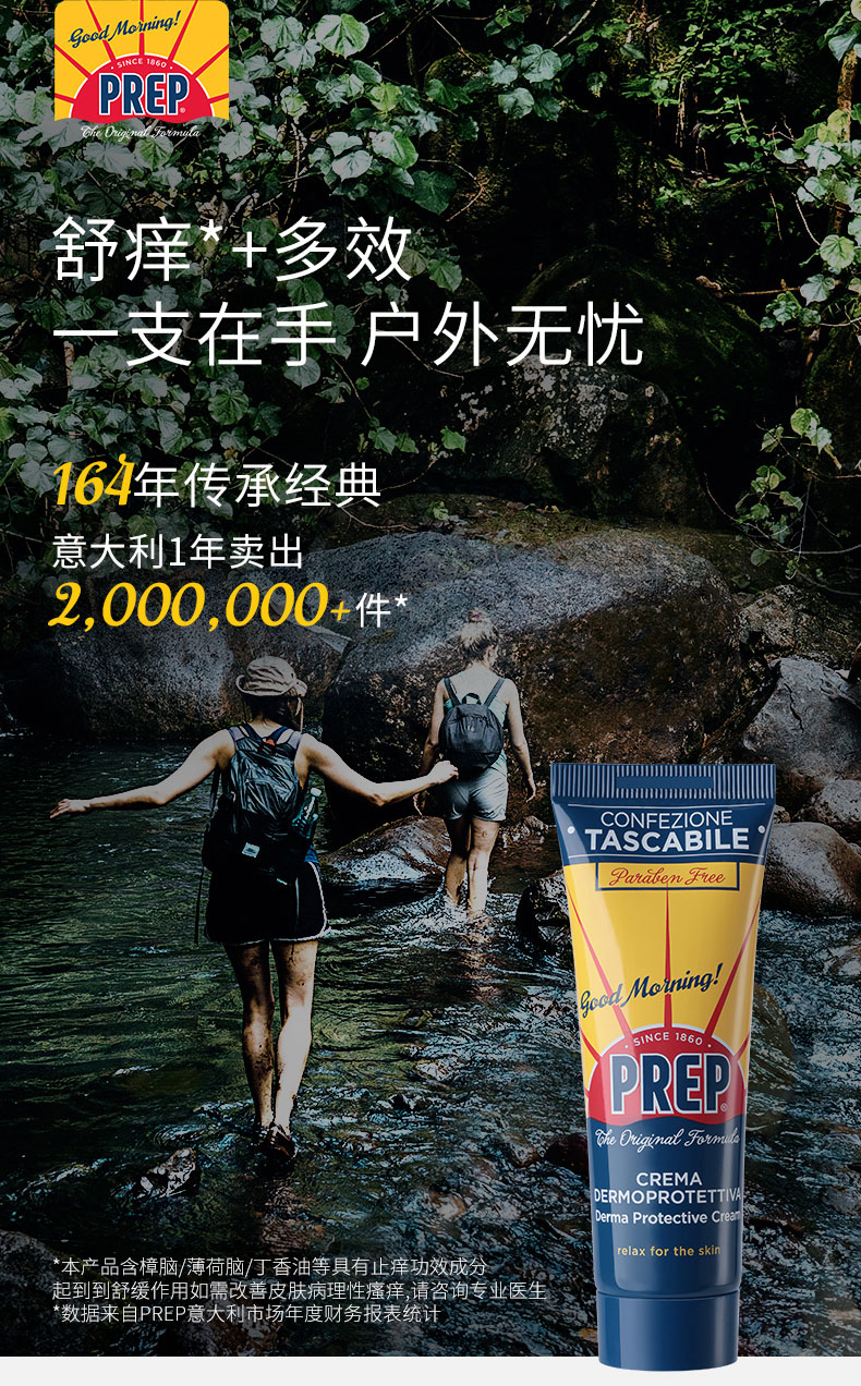 PREP在欧洲户外圈早就是口碑王炸了,有着百年历史的药妆背景,专为敏感肌和儿童研发护肤线,Coswel实验室的检测认证更不是盖的,闭眼入!它家的应急膏可以说是成分控的福音!Rationale-COMPOUND技术把植物精油玩出花来,薄荷脑+薄荷醇,清凉感拉满,消肿速度肉眼可见,还有百里酚、忍冬油这些修护大拿,晒后红到发紫的皮肤都能温柔安抚,丁香酚更是点睛,镇静效果绝了!
