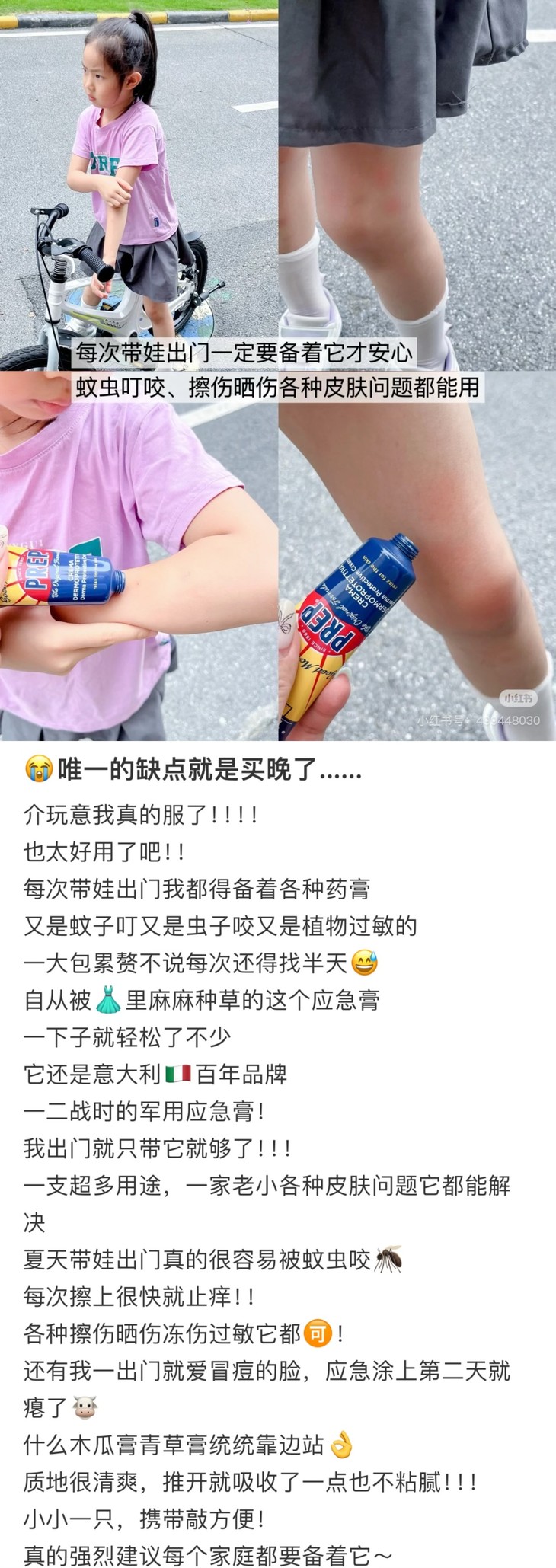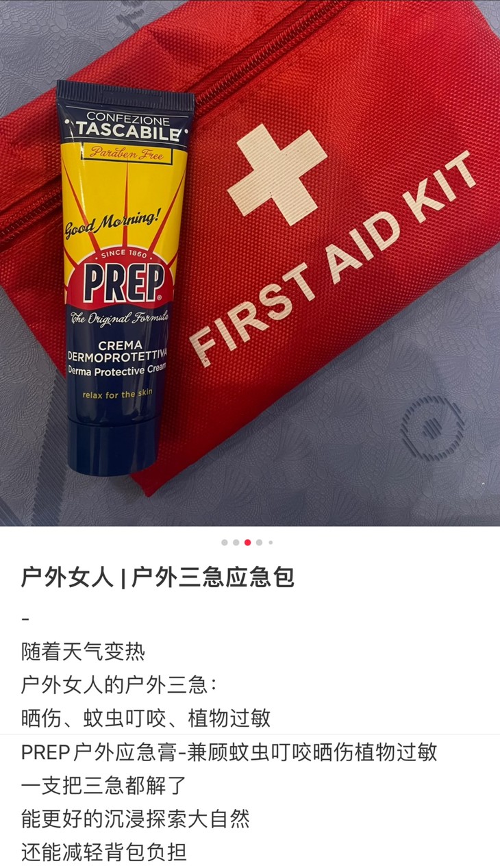 夏天要来了!但,一想到可能会被蚊子当自助餐,皮肤晒成烤乳猪,真的笑容会消失,一定得来给大家安排些户外护理神器!这瓶意大利PREP应急膏,可是传奇万用霜哦,作为家喻户晓的明星产品,蚊虫叮咬、晒伤、烫伤、皮炎湿疹都能搞定,连剃须后都能用!一瓶顶十瓶!