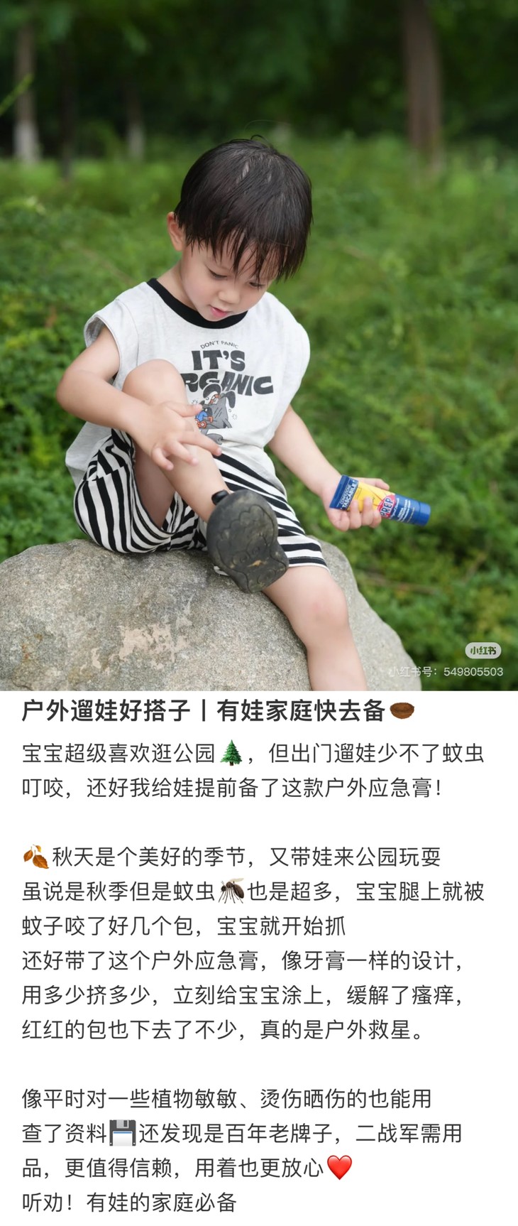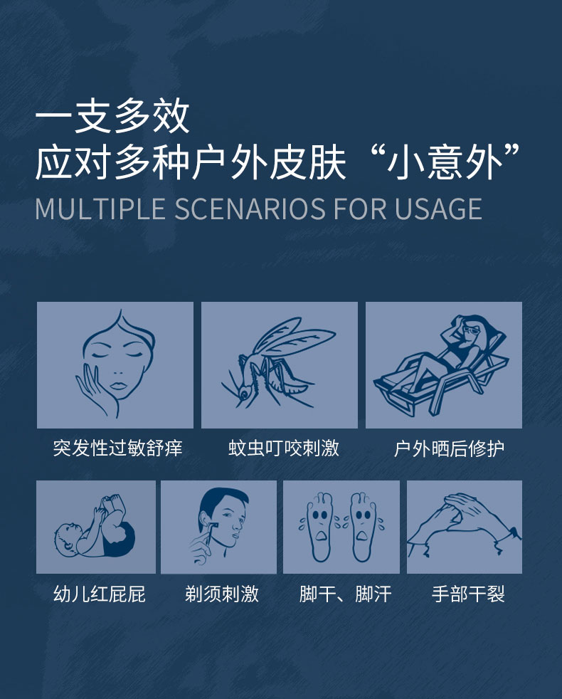 家里有小朋友,或是喜欢露营爬山的,一定要备上哦!蚊虫叮咬一抹止痒,晒伤泛红分分钟降温,还有手脚干裂、脚汗臭臭这些小毛病,也能试一试!敏感肌湿疹过敏急救,老公须后镇静,儿童可用更是加分项了,宝宝的红pp能用,口水疹能用,痱子也可以!