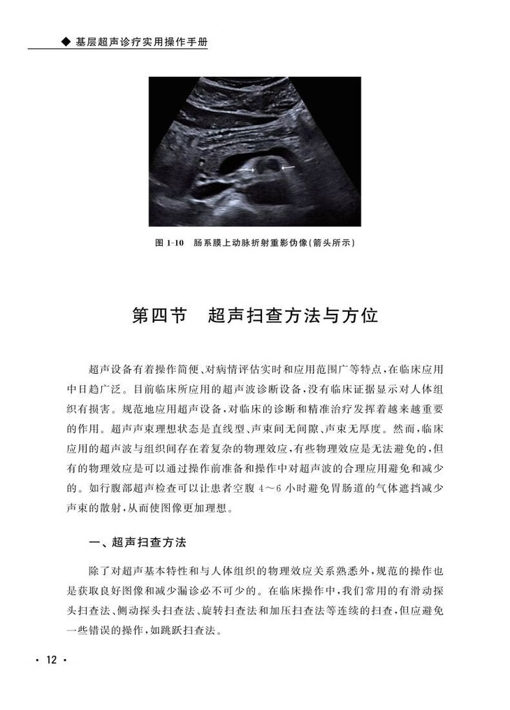 在超声设备的小型化、便携化和可视化发展的背景下,超声技术已在各医疗机构尤其是基层医疗机构超声医学科和临床各科室推广应用。然而,部分基层医疗机构超声科和临床科室在使用超声前未经过系统化、专业化的培训,在超声成像原理、超声伪像的识别、伪像的应用、检查适应证、检查前准备、检查方法、图像获取、图像识别等方面基础水平仍需提升。