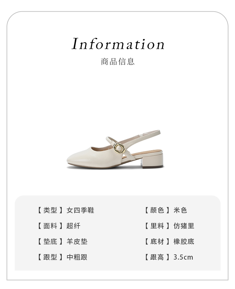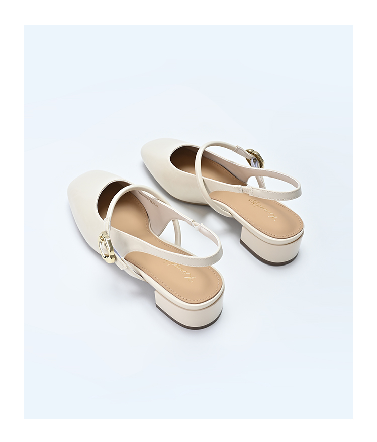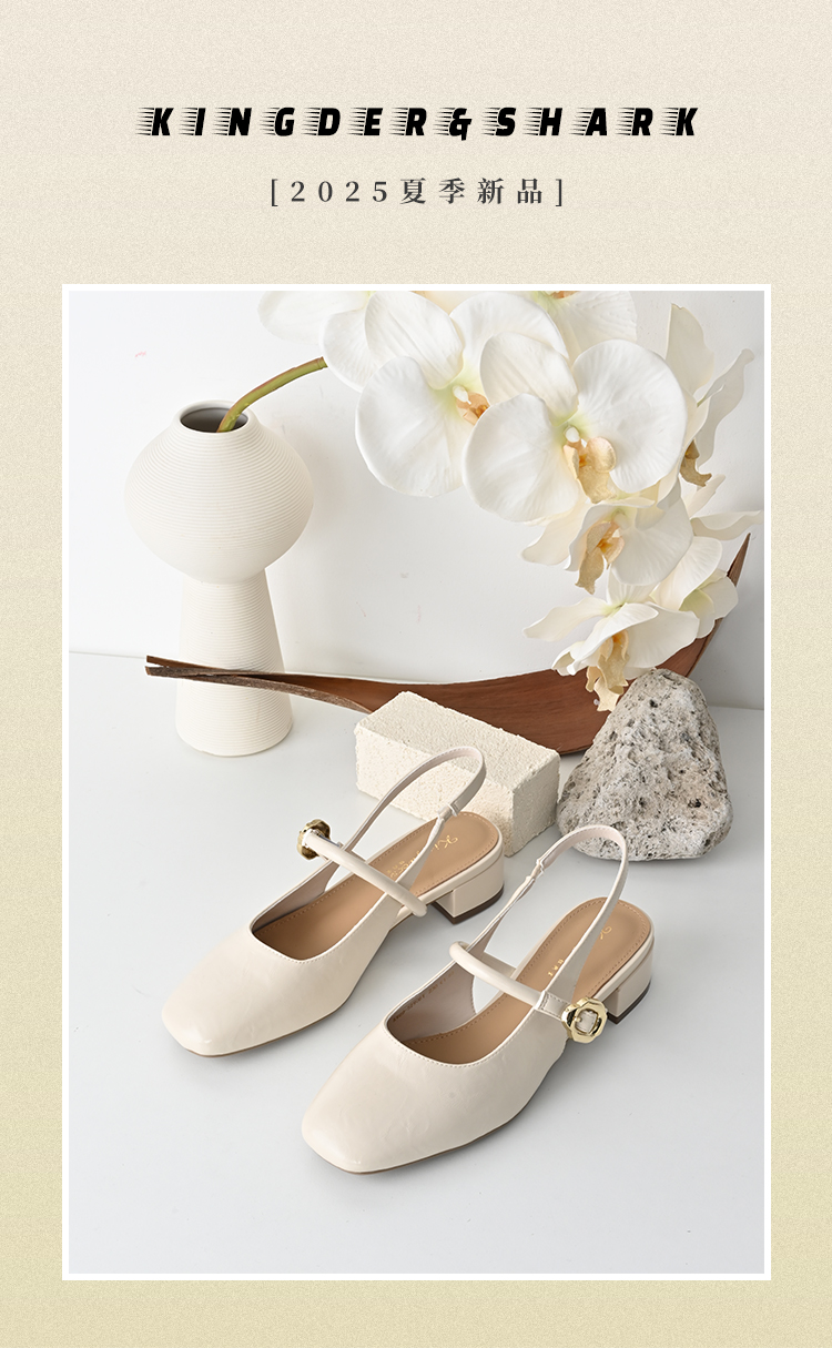经典鲨2025年夏季款法式复古方头后空中粗跟优雅单鞋凉鞋女KW89-529061