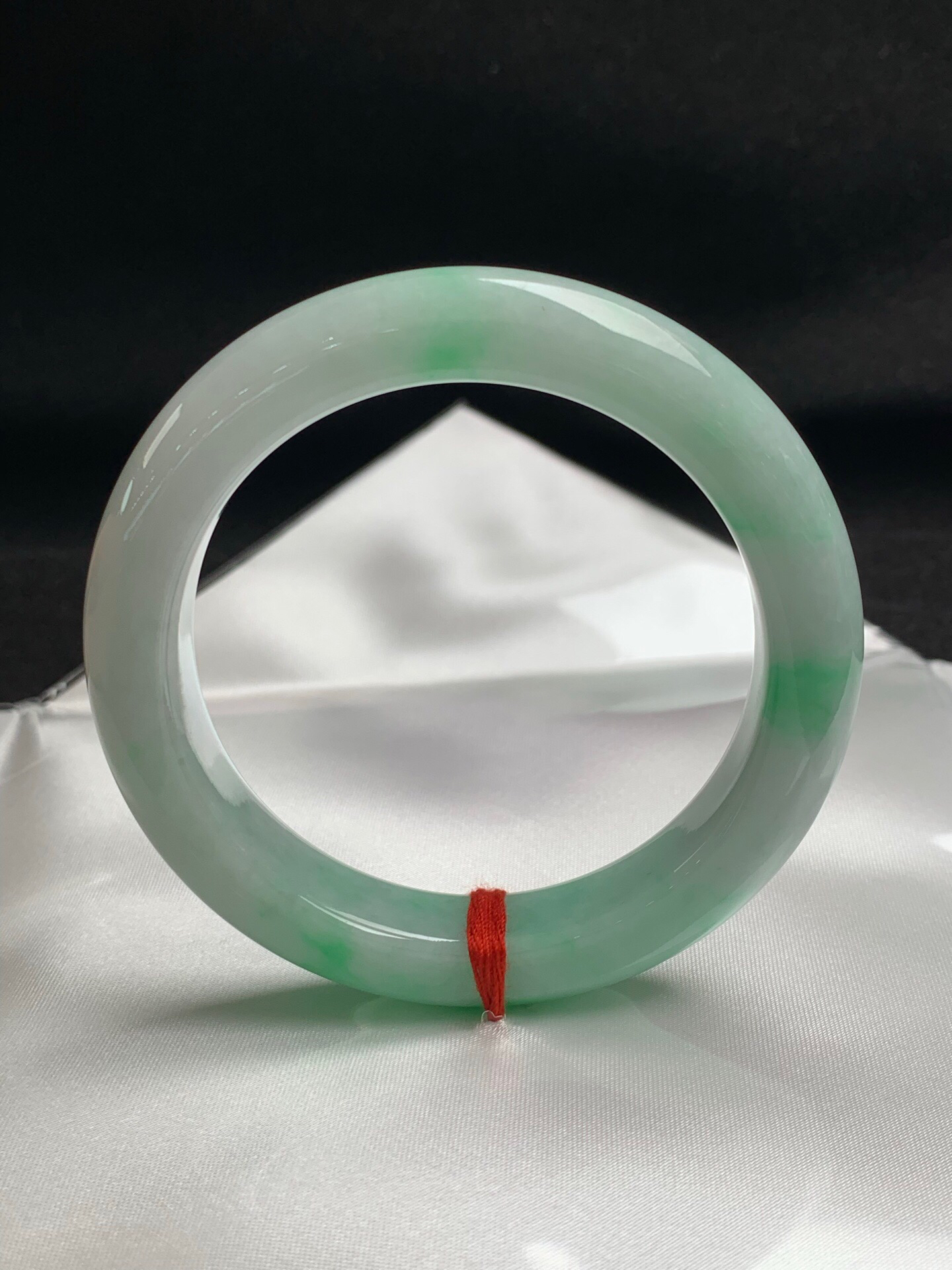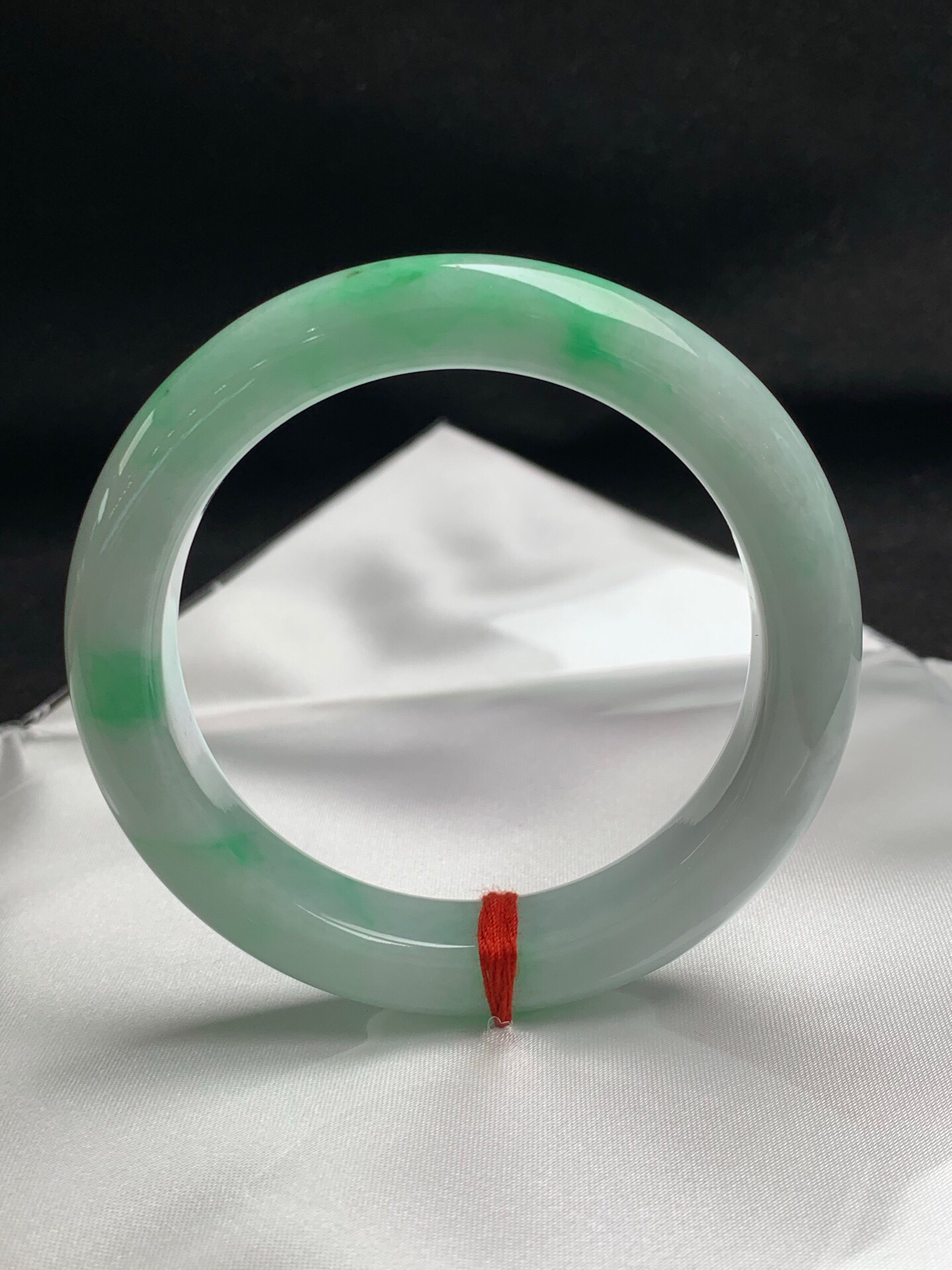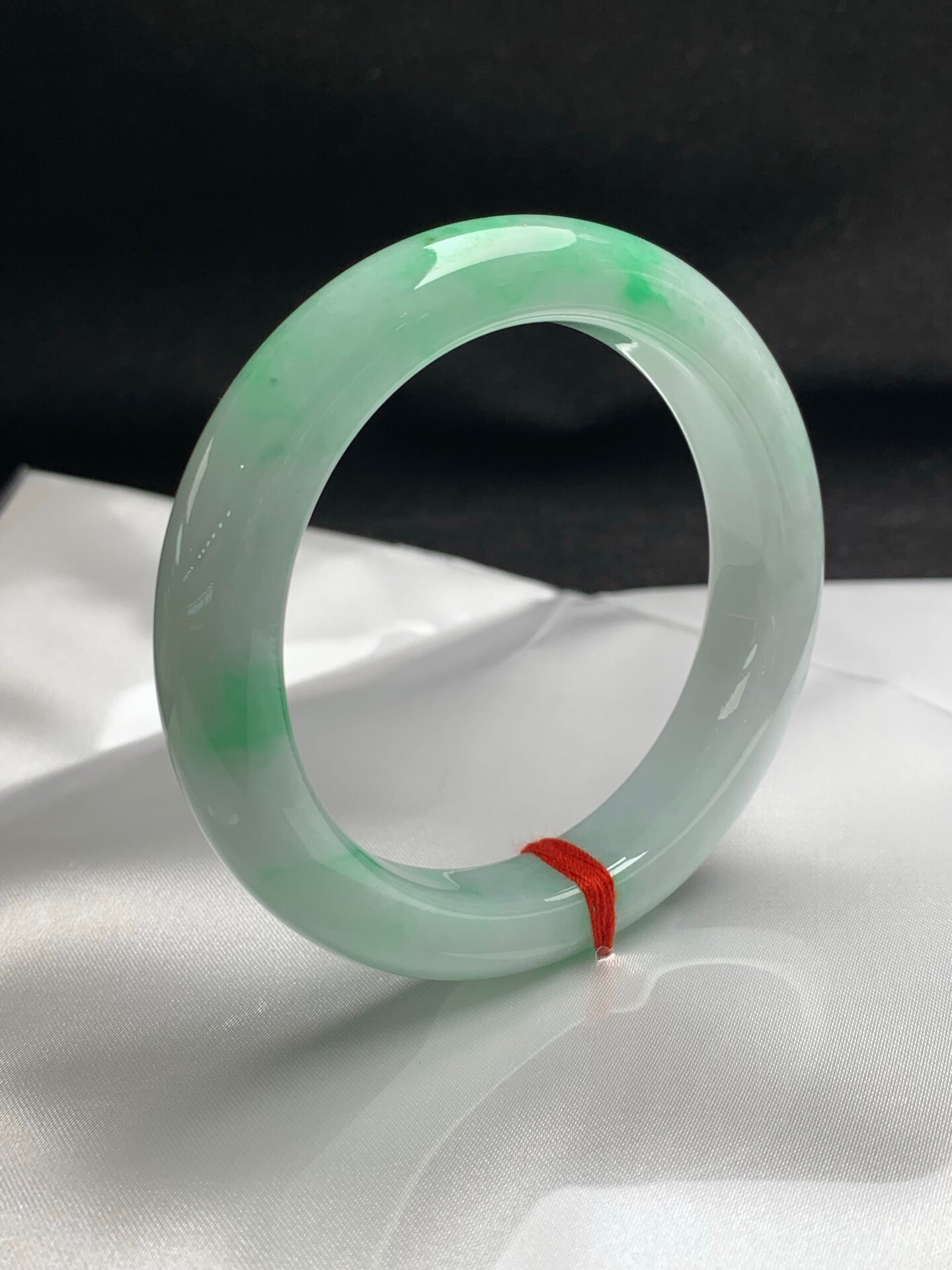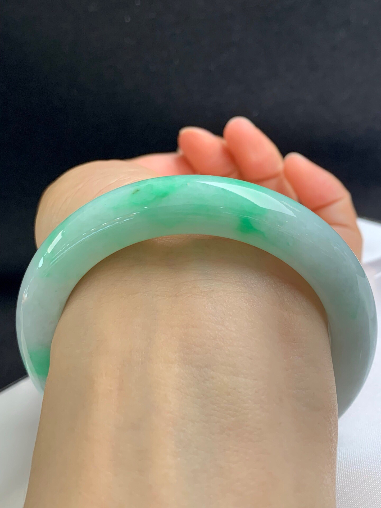 620391,57.5圈口,飘绿正圈平安镯,白底飘阳绿,条形厚装,完美,尺寸:57.5-12.5-9.9,超值价💰23700 #优石客珠宝#香玉荟萃