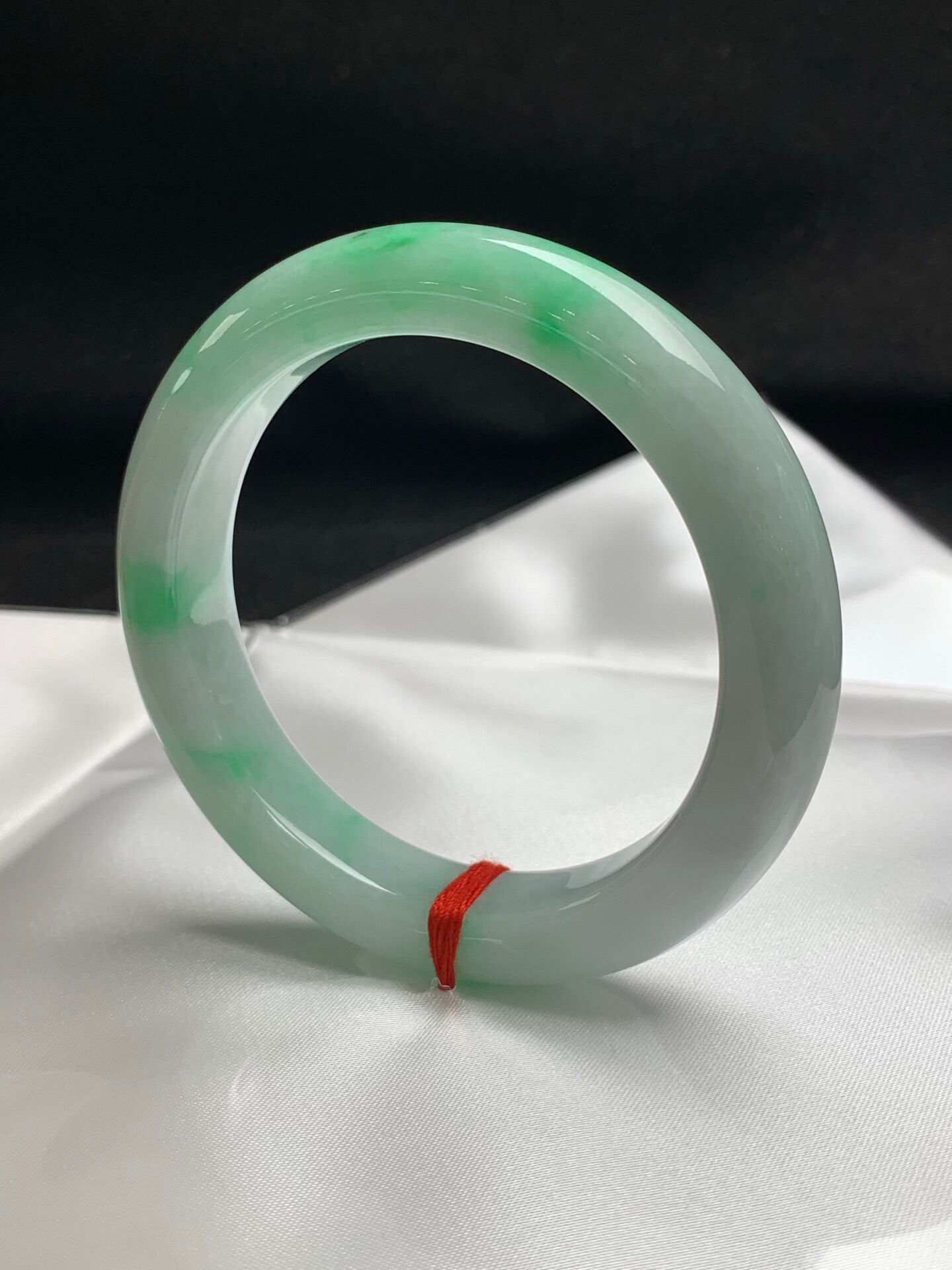 620391,57.5圈口,飘绿正圈平安镯,白底飘阳绿,条形厚装