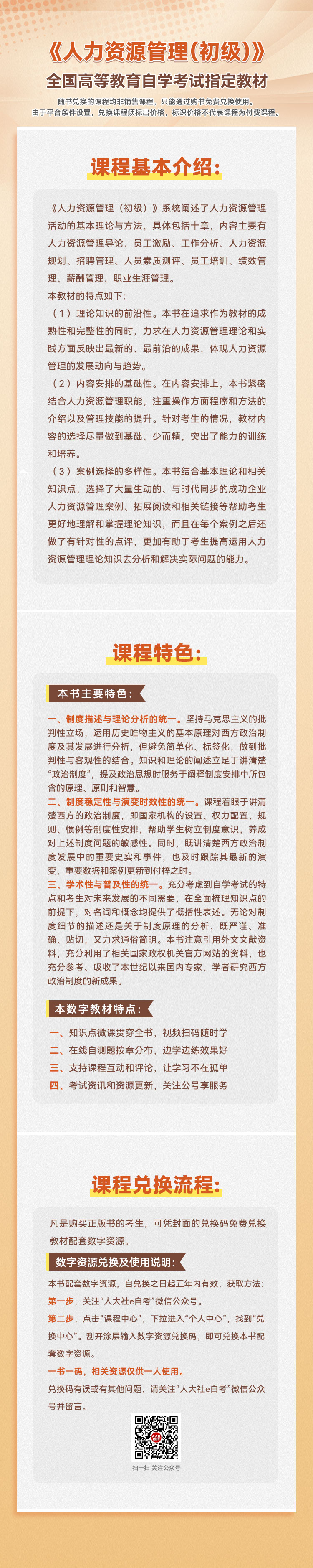 本书对职业分析与设计、人力资源规划、员工招聘、员工使用与调配、职业生涯管理、绩效管理等内容进行了全面介绍。每一章均设置了本章要点与案例,有助于读者掌握人力资源管理的理论及实务的基本内容。本书吸收了人力资源管理理论和实践的最新变化,内容实效性极强,并且提供的资源丰富,和师生们的要求紧密结合。本书比较系统地介绍了人力资源管理的基本理论和实务,提供了案例和相关拓展性内容,有助于读者深入理解和应用所学知识。
