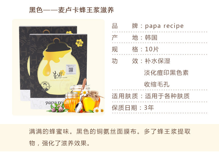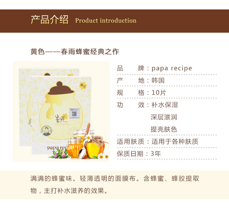 【面膜】*黑春雨蜂蜜保湿面膜人头新版 春雨保湿面膜