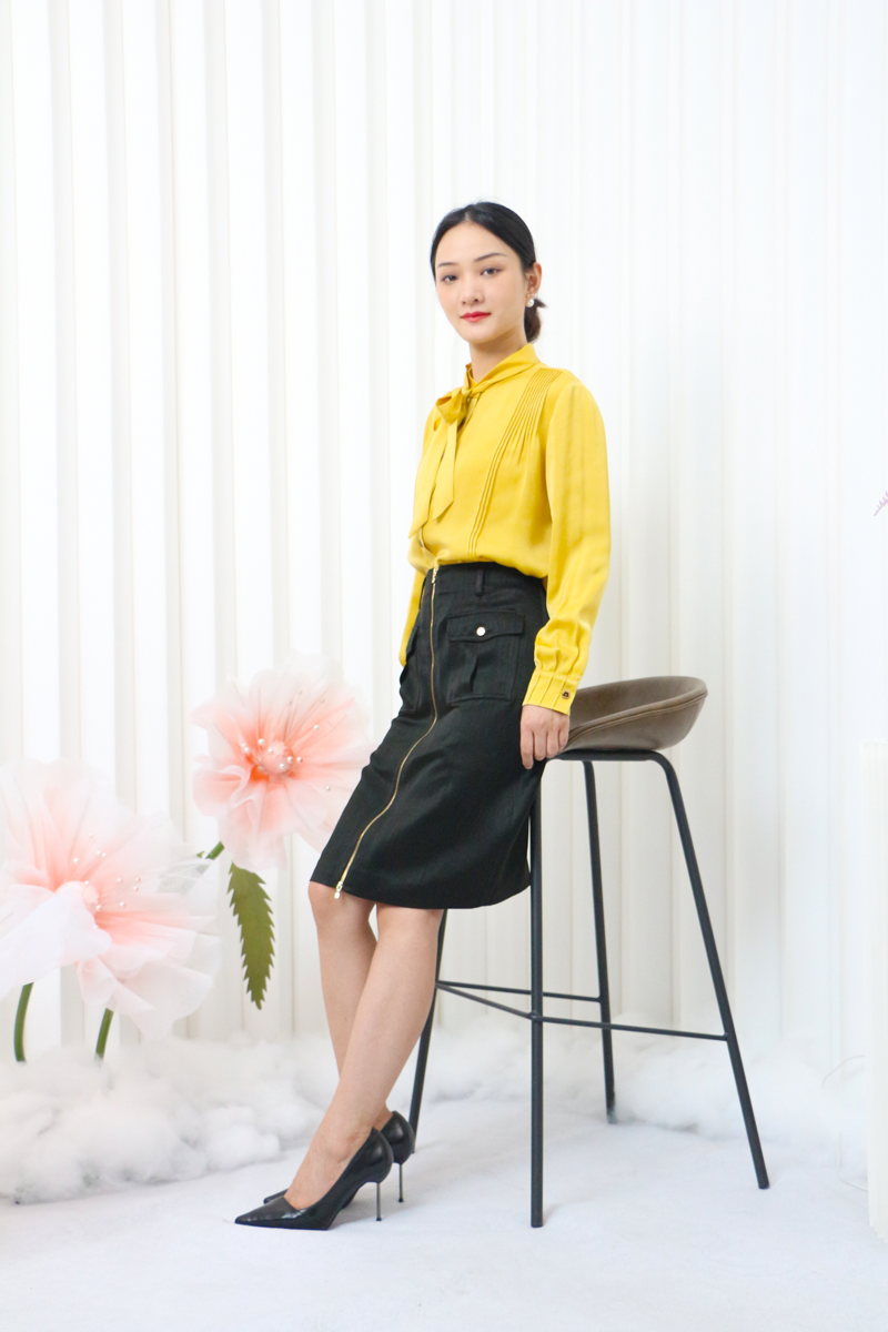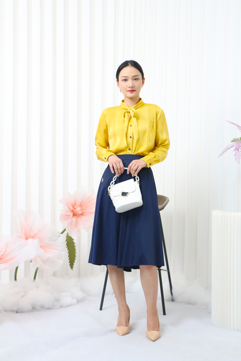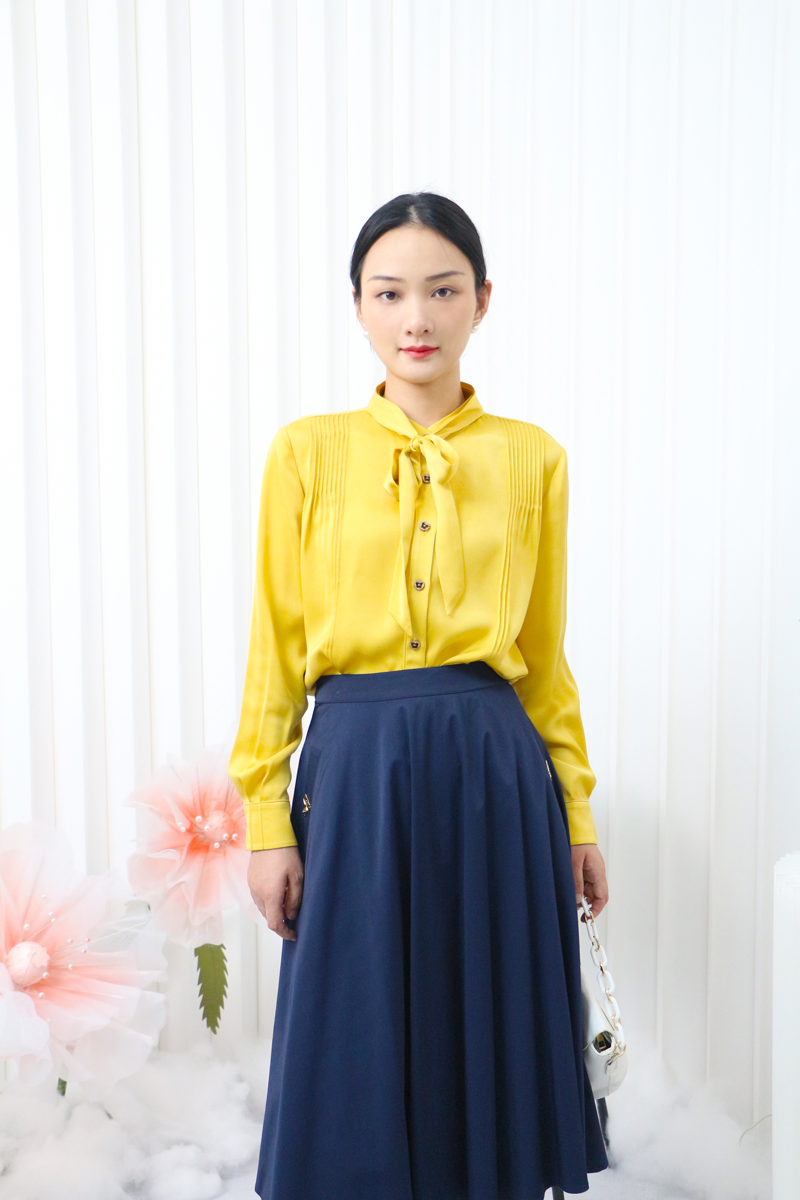 千年情话—梁祝栀黄色、凝脂色缎面衬衣LZ3F02