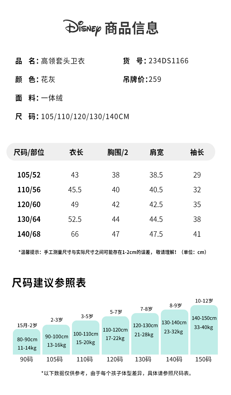 【商场同款】迪士尼秋季男童保暖套头卫衣234DS1166