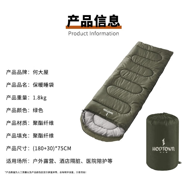 何大屋保暖睡袋HDW1518 颜色随机发【CZ】