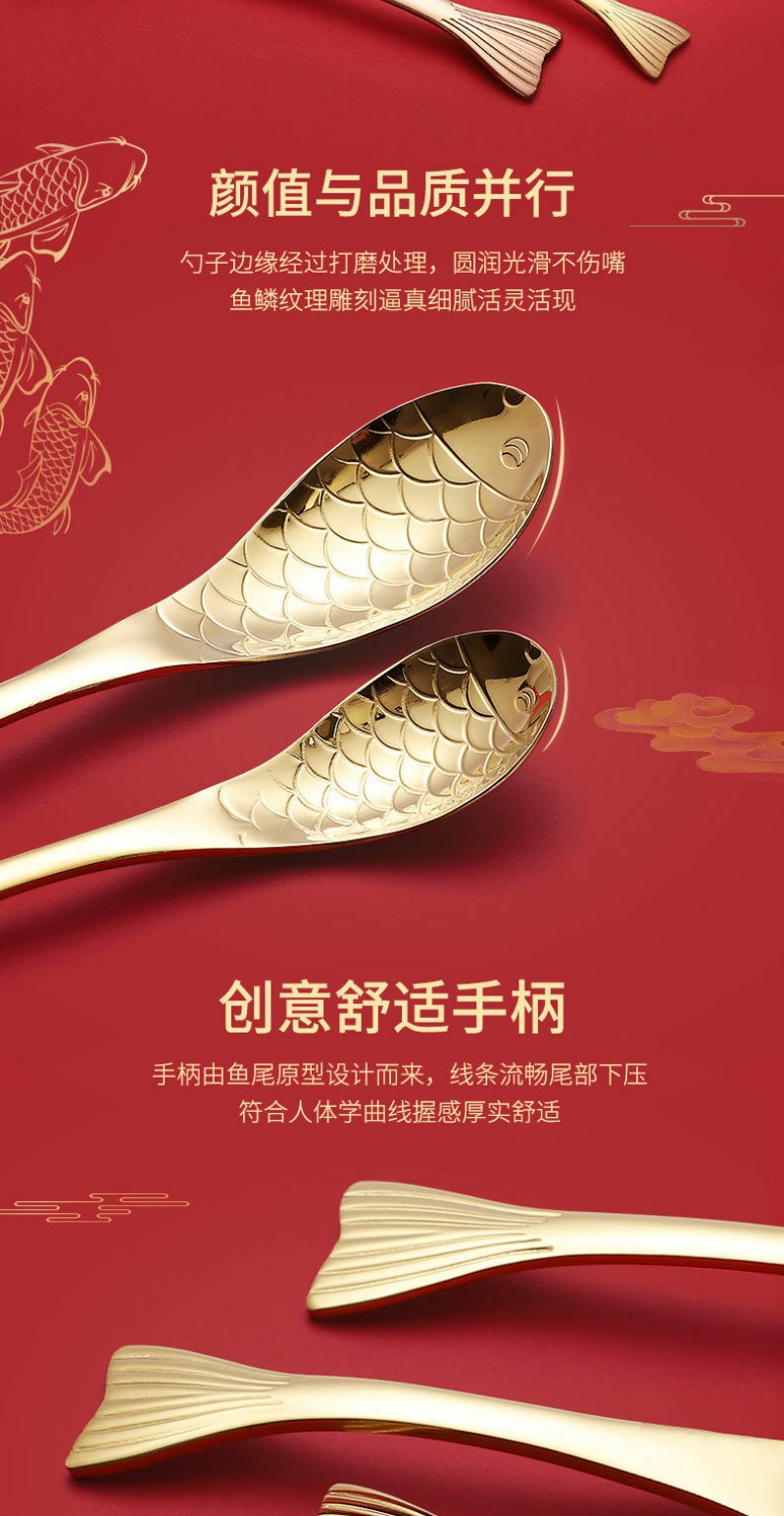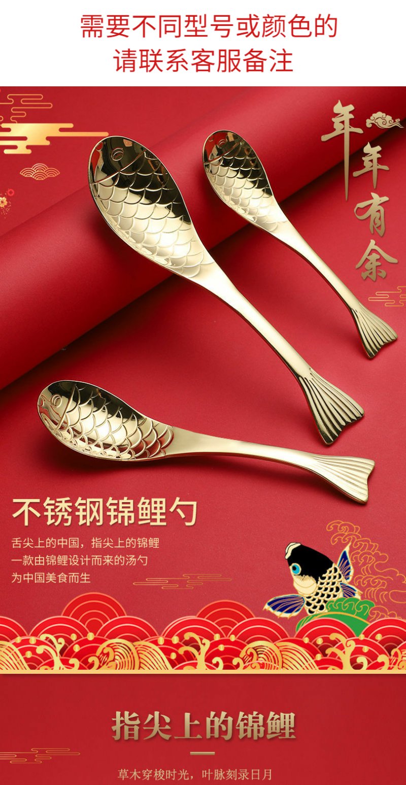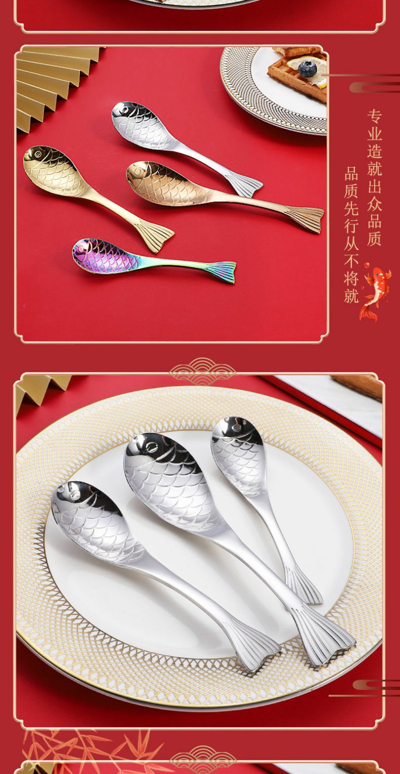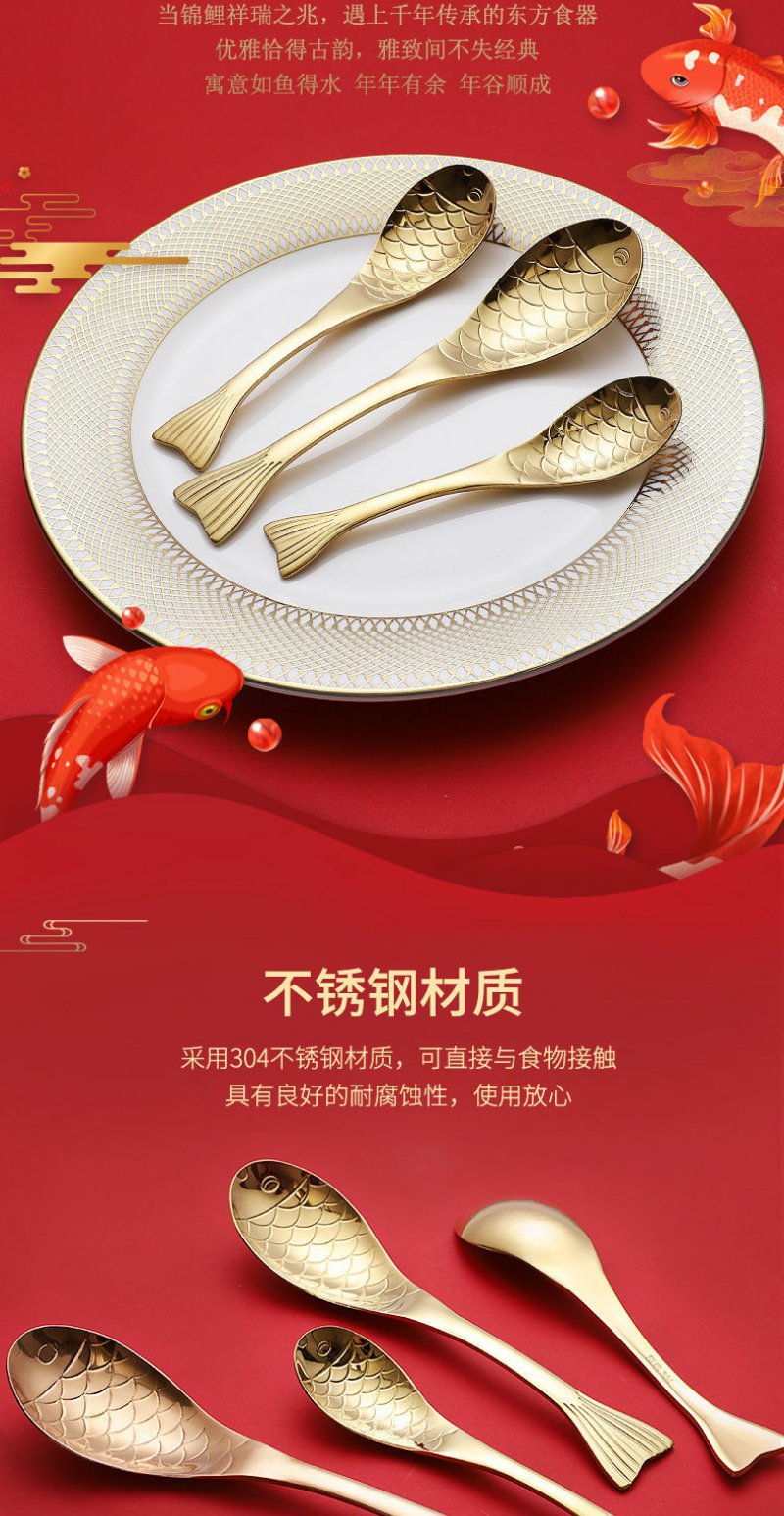 勺子韩式可爱304不锈钢勺子长柄调羹勺网红勺子儿童汤匙锦鲤鱼勺