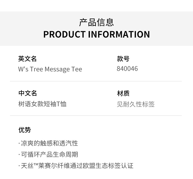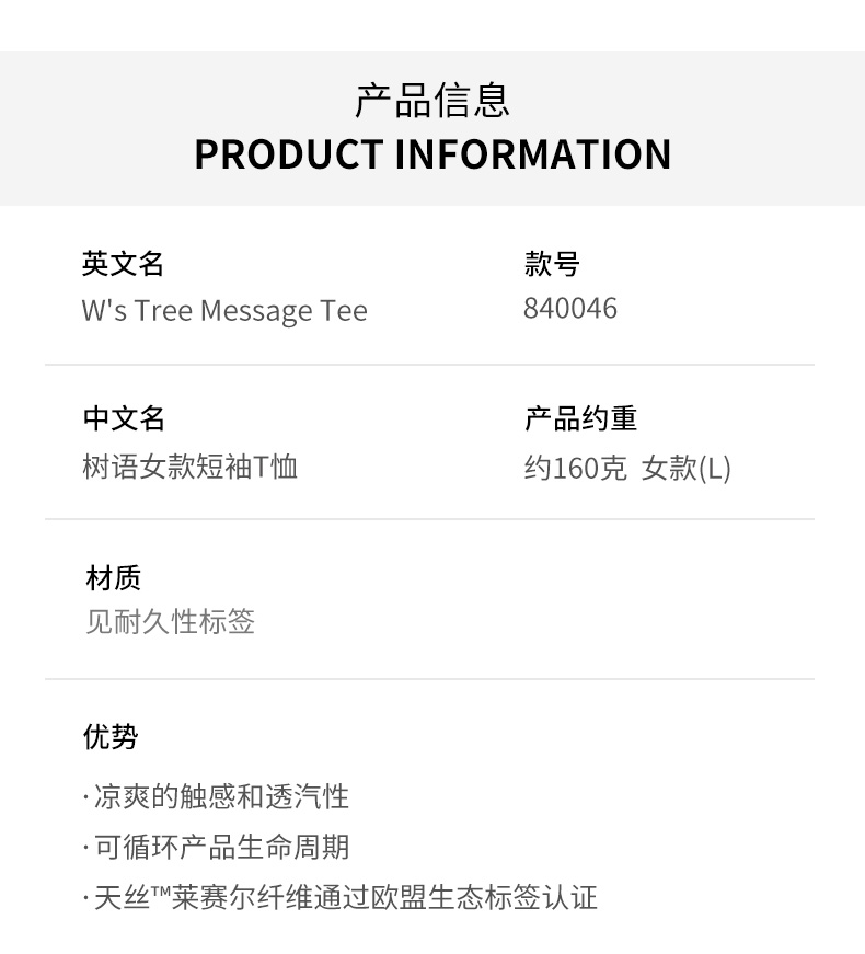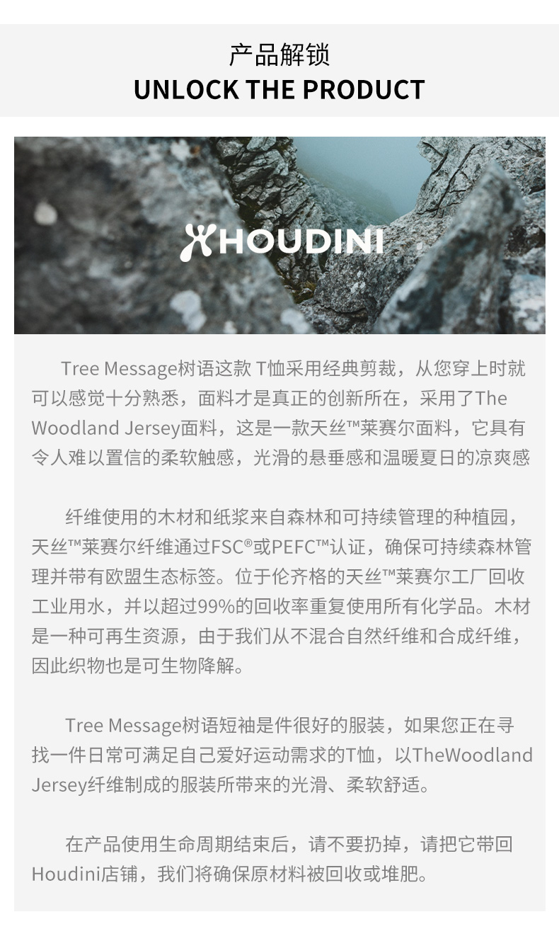 HOUDINI胡丁尼 Tree Message Tee 树语女户外凉爽印花天丝短袖T恤 840046/131024