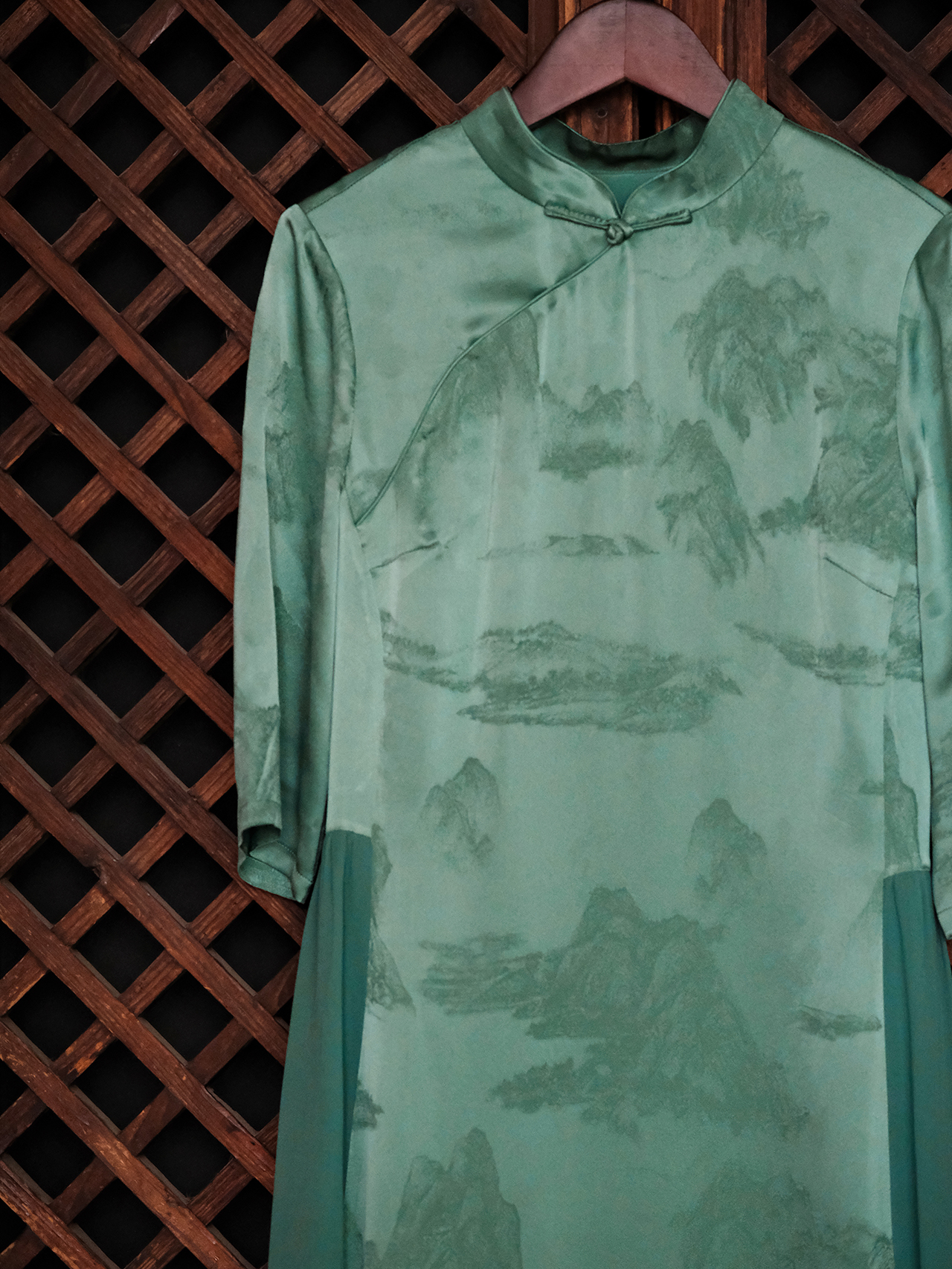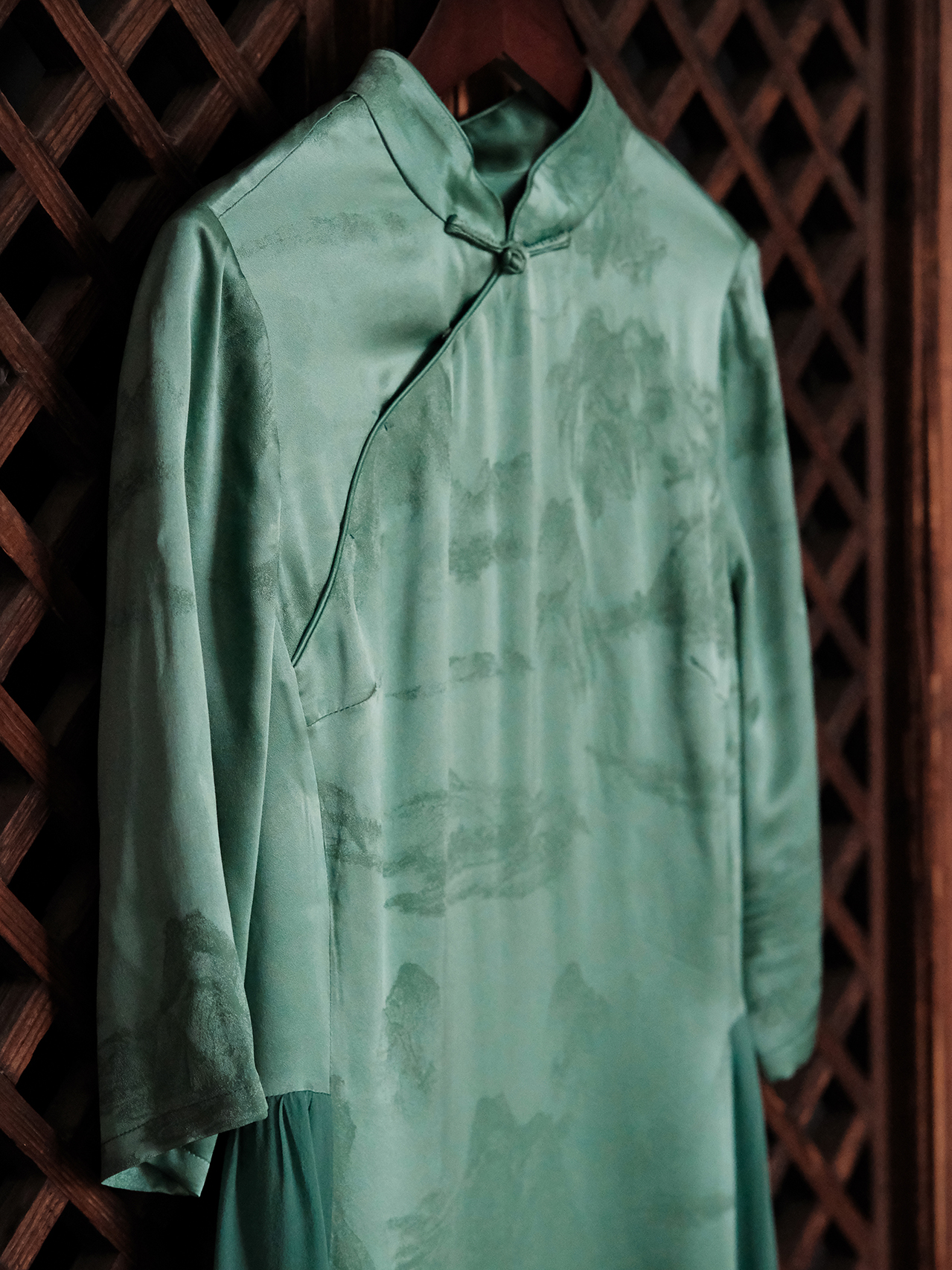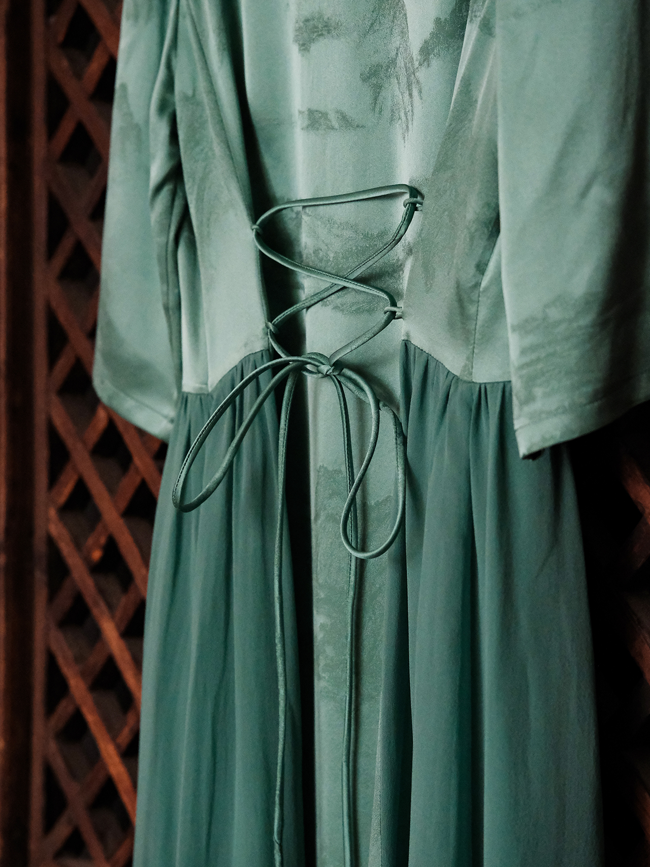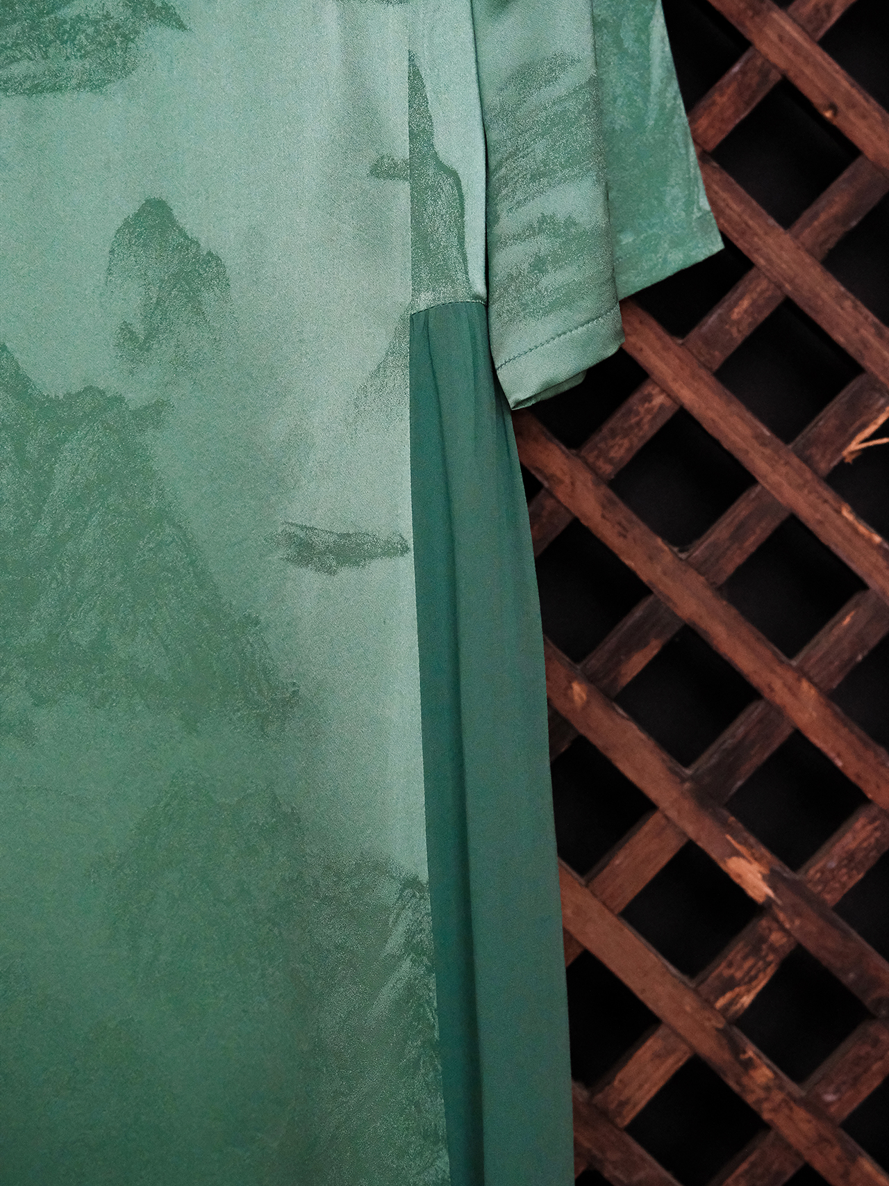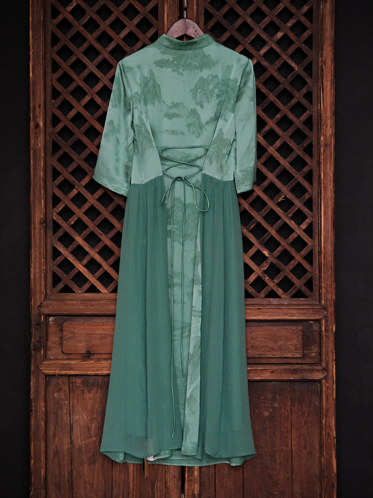 STJINGx凯喜雅x故宫| 千里江山玥盈旗袍连衣裙-铜青