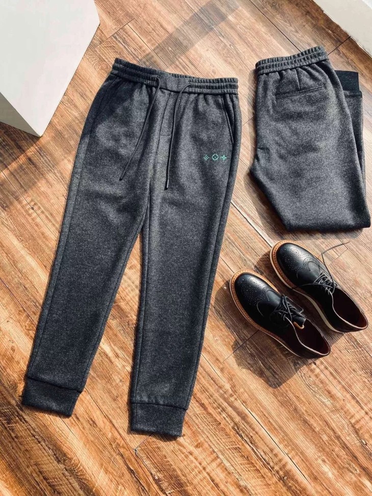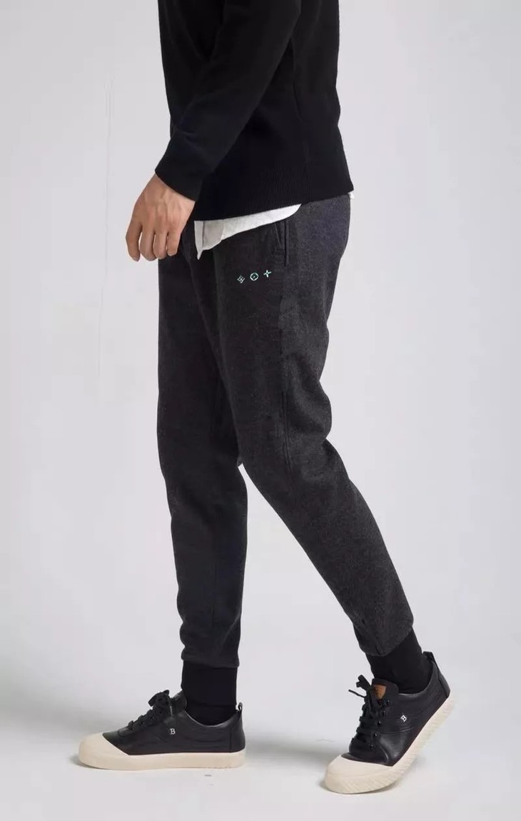 运动裤的版型超正,上身不紧绷也不阔绰,属于时装休闲羊毛卫裤的版。
