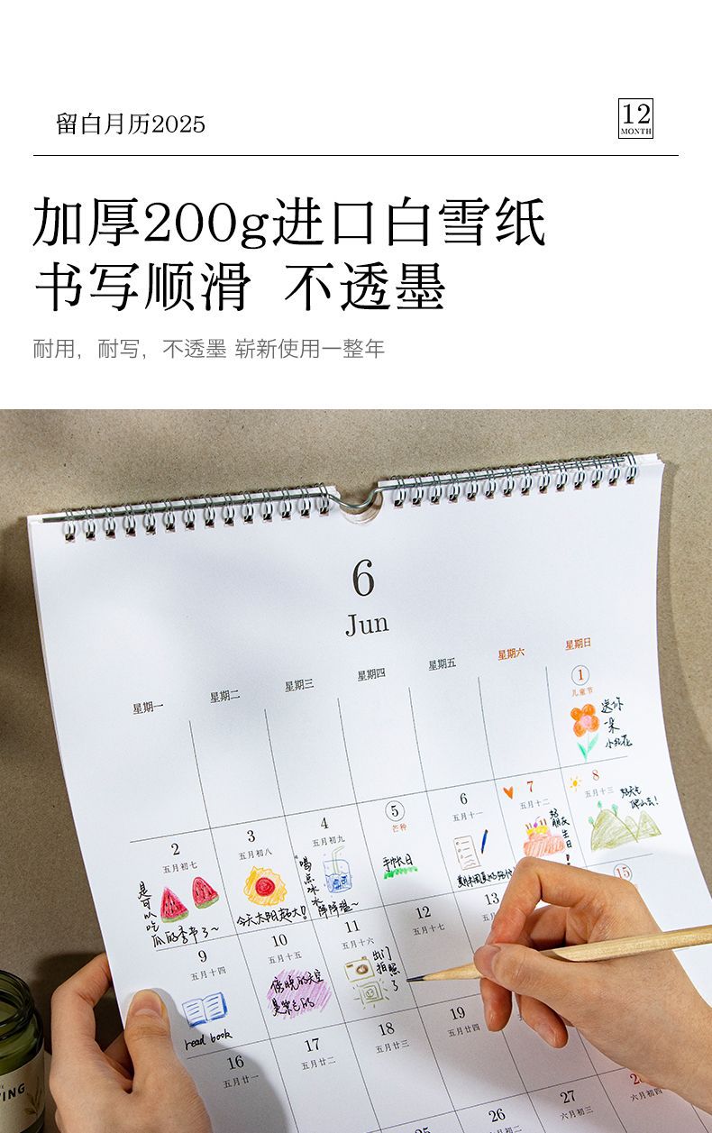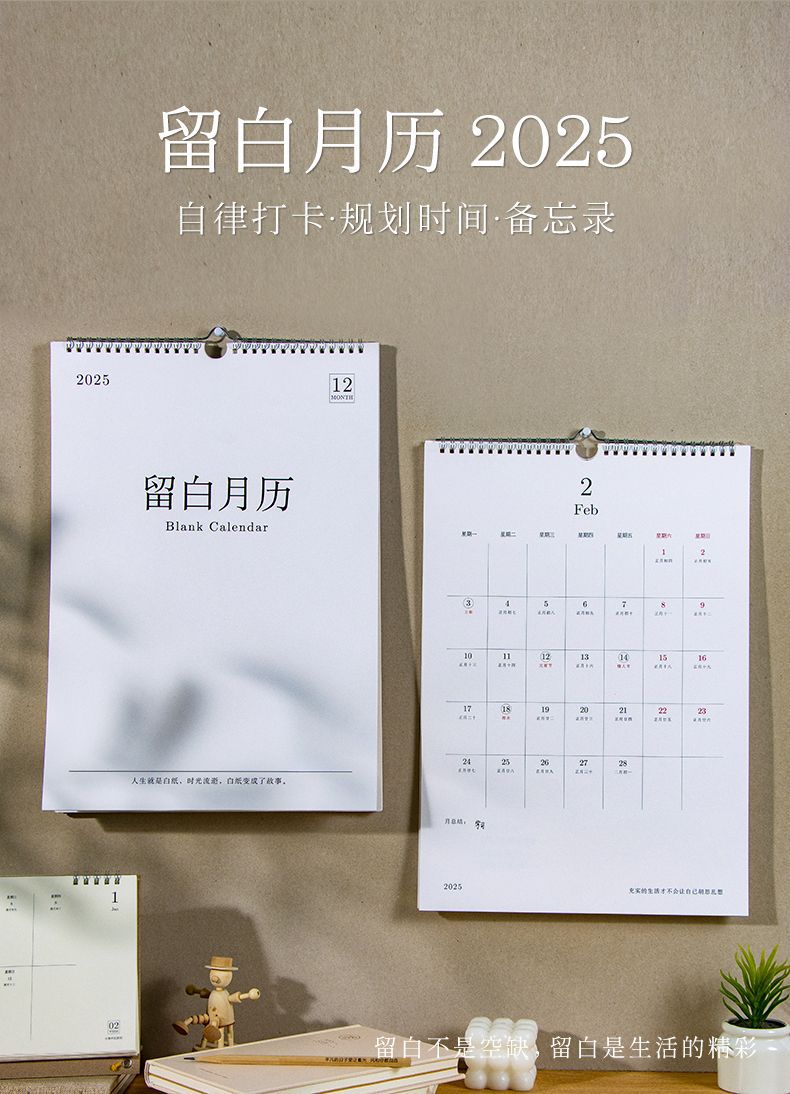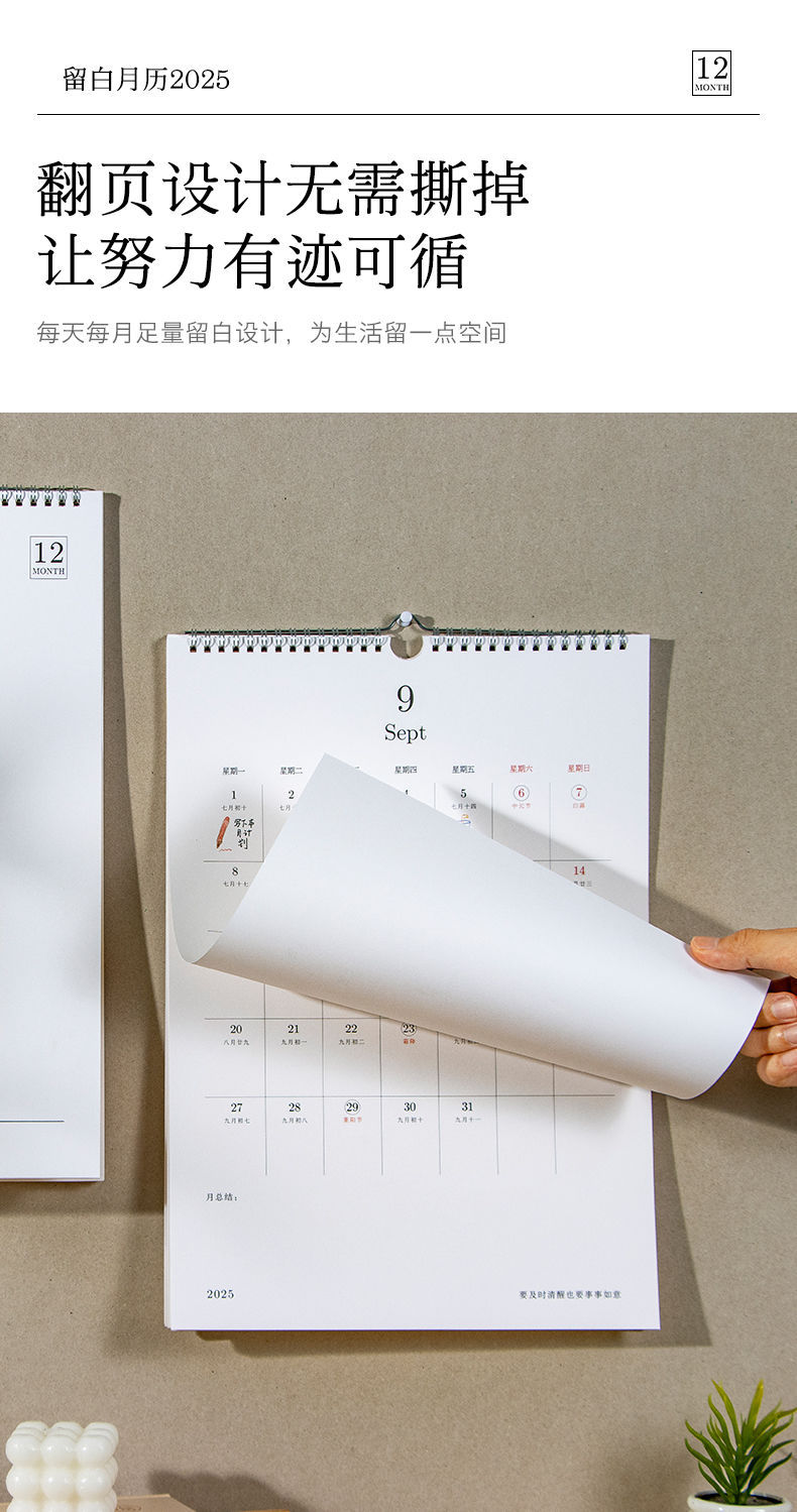 【既是挂历也是打卡计划本】青禾纪2025年留白月历自律打卡,便于挂取可360°平摊翻页更顺畅,文艺ins风简约线圈挂历计划表日历QQ2026马年新年款