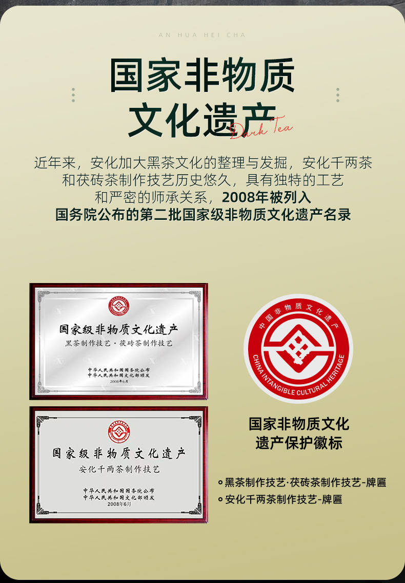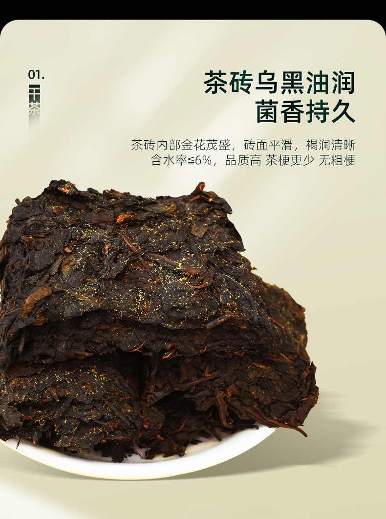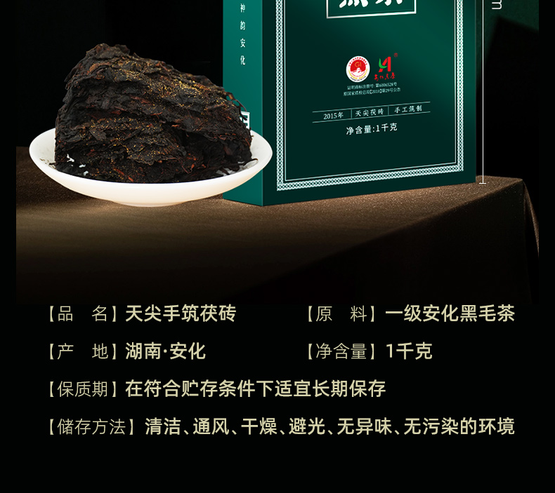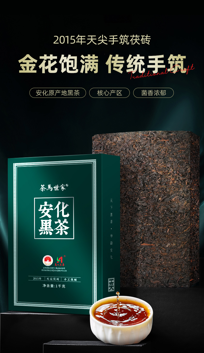 茶马世家安化黑茶金花茯砖天尖料2015年手筑茯砖1kg