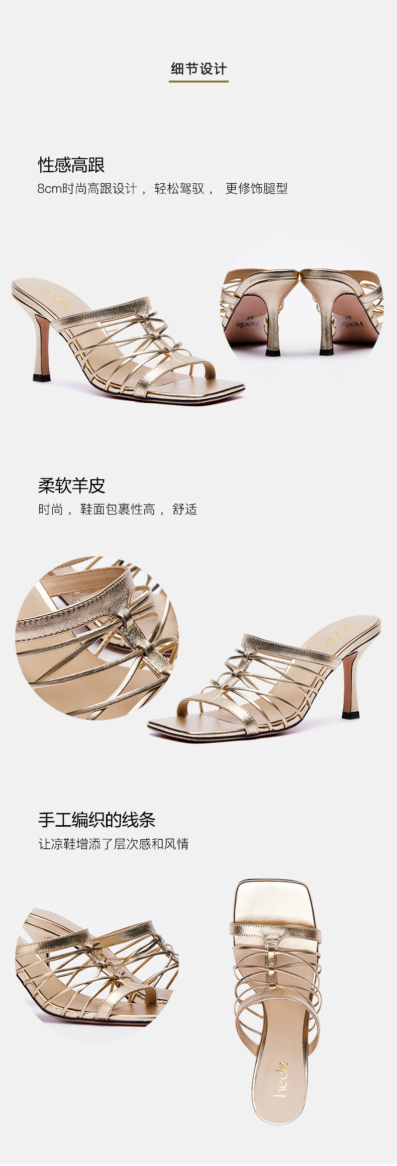 heelz设计师手工鞋履|Liz80mm条带穆勒真皮手工小众设计罗马凉鞋