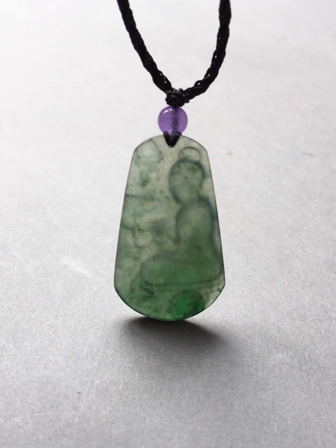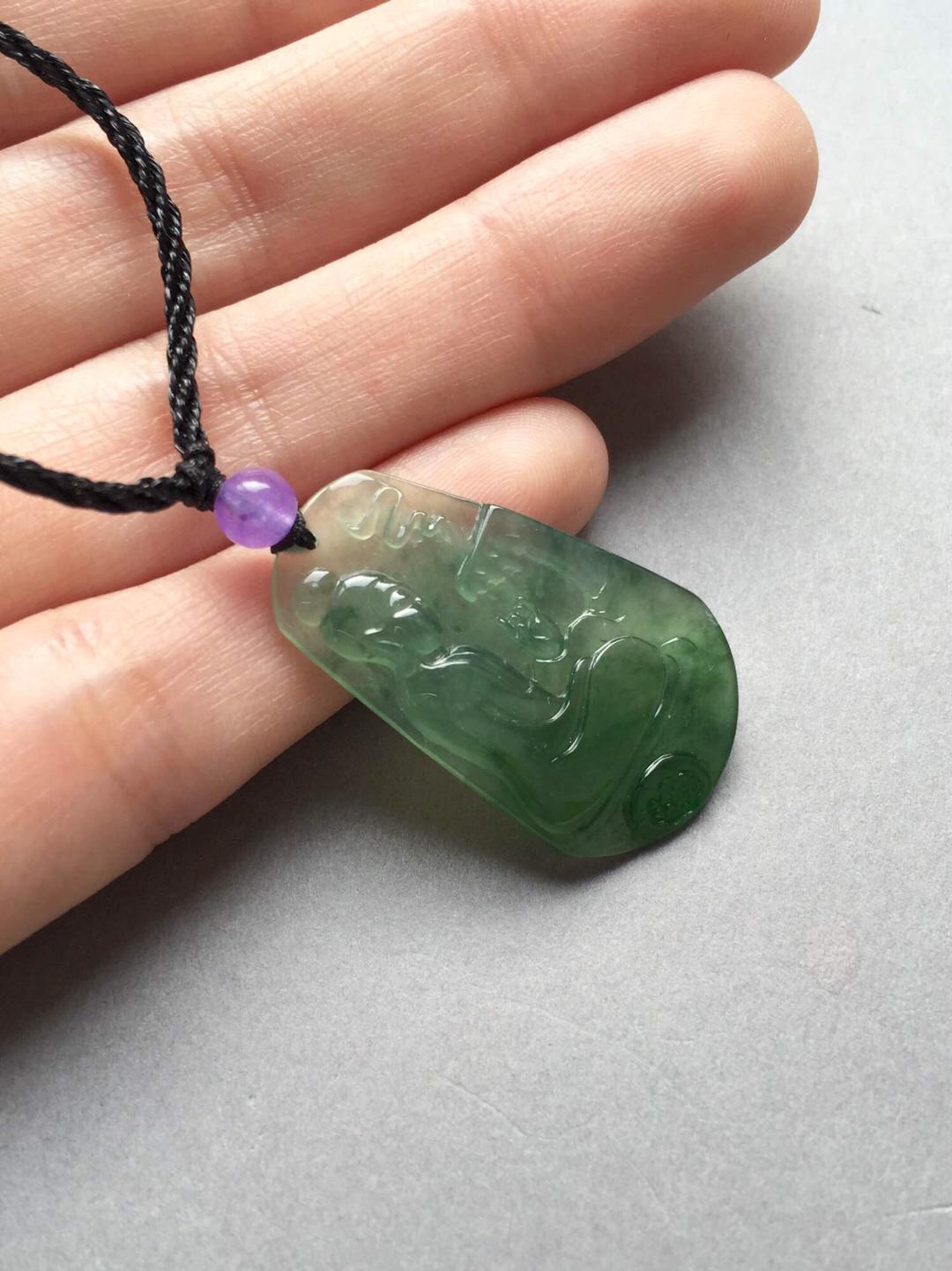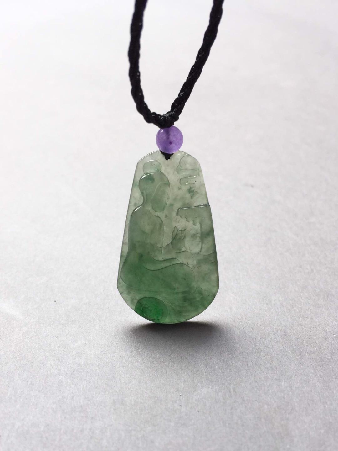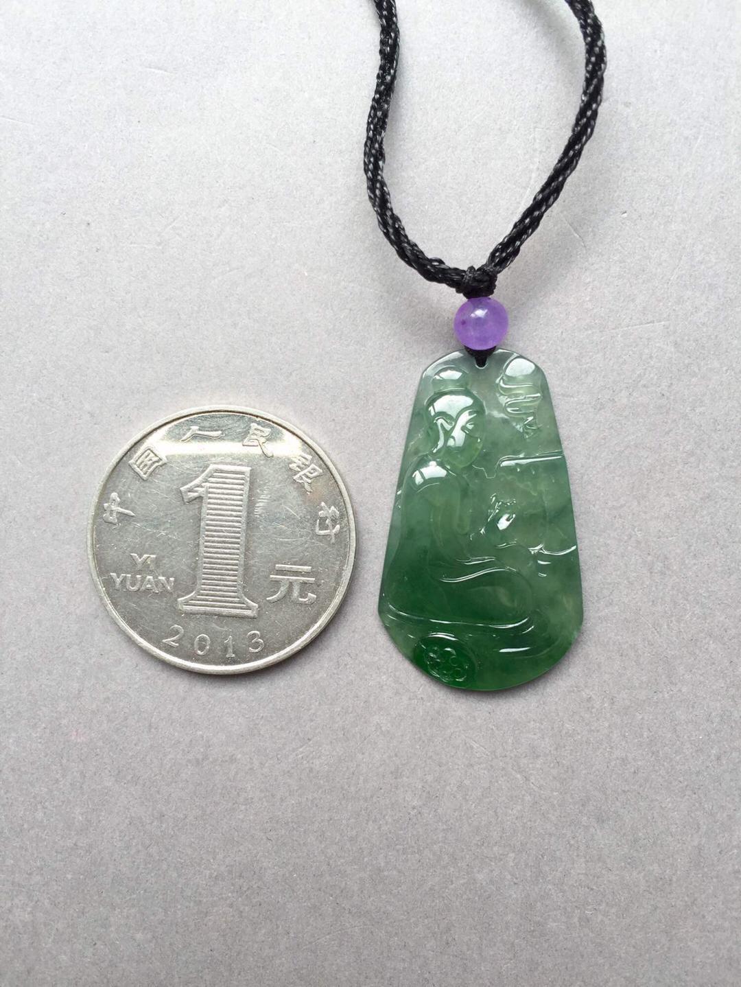 高冰种晴水翡翠一念菩提。实在太特别了,种水色工俱佳,31.7*18.6*4mm。种水贼好,高冰原生矿,晴水绿漂亮,种气极寒,荧光四射,雕工棒,线条间完美呈现那只可意会不可言传的神韵,一念菩提,不可多得的特色精品,推荐