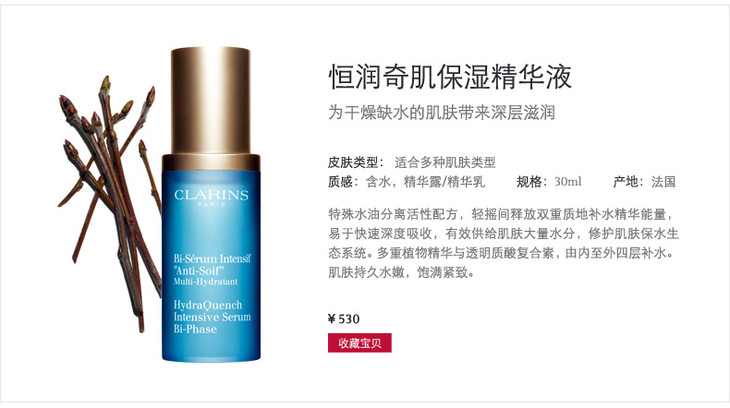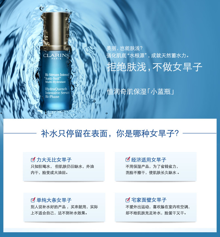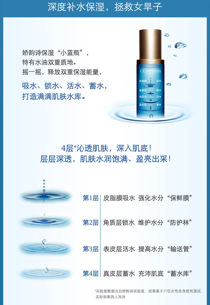 【1F】娇韵诗恒润奇肌保湿精华液30ml 深层滋润锁水舒缓滋养补水小蓝瓶