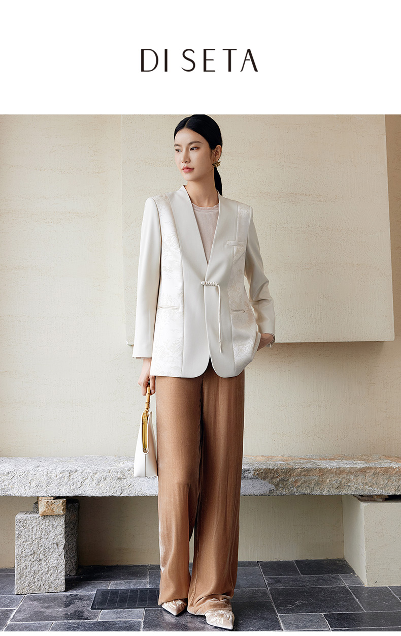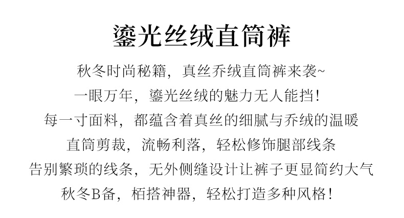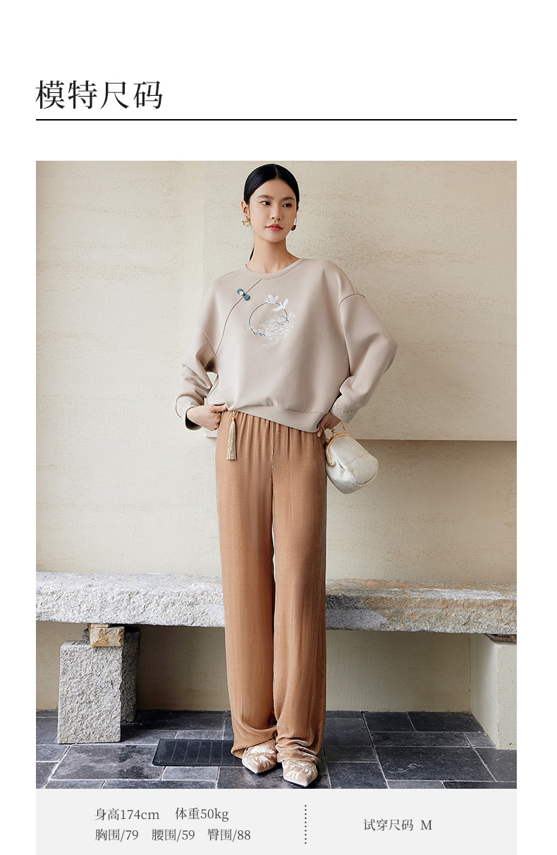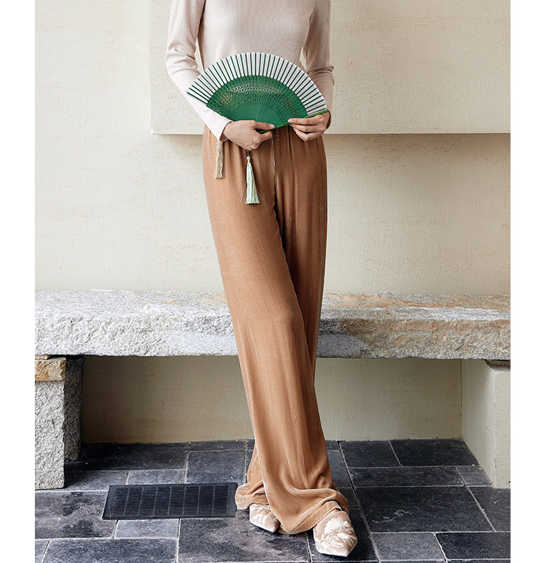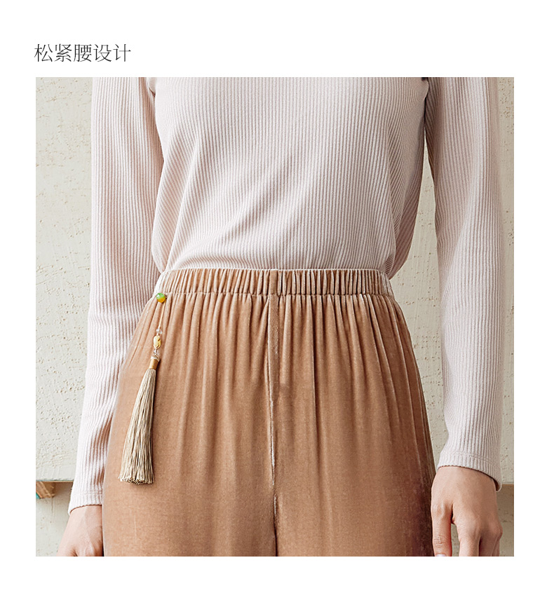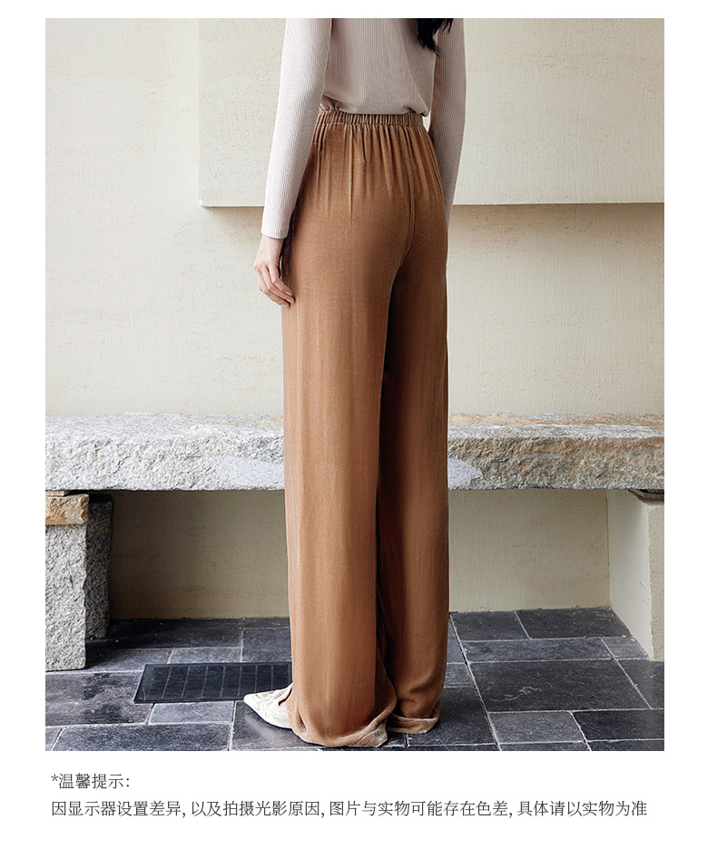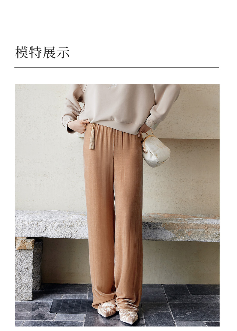玳莎真丝丝绒宽松直筒裤女2024早秋新款吊坠装饰显瘦松紧腰休闲裤 EC36305