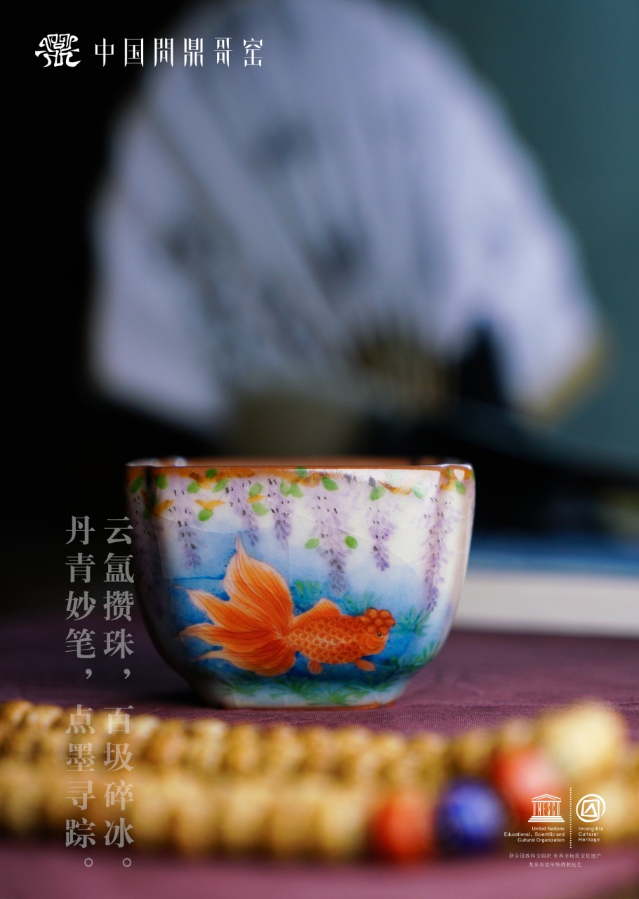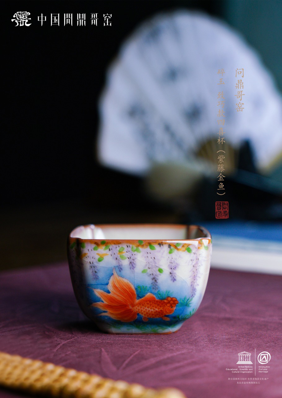 问鼎哥窑 四喜杯 (紫藤金鱼)(缺货)