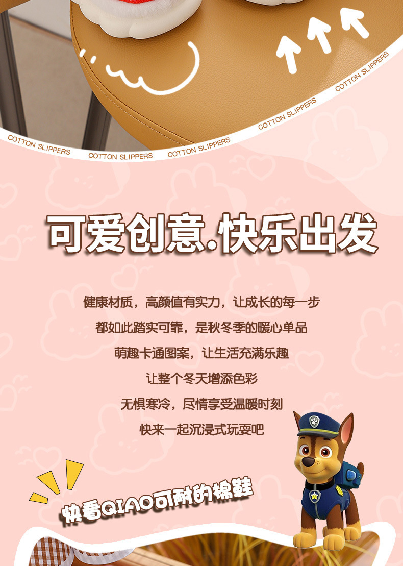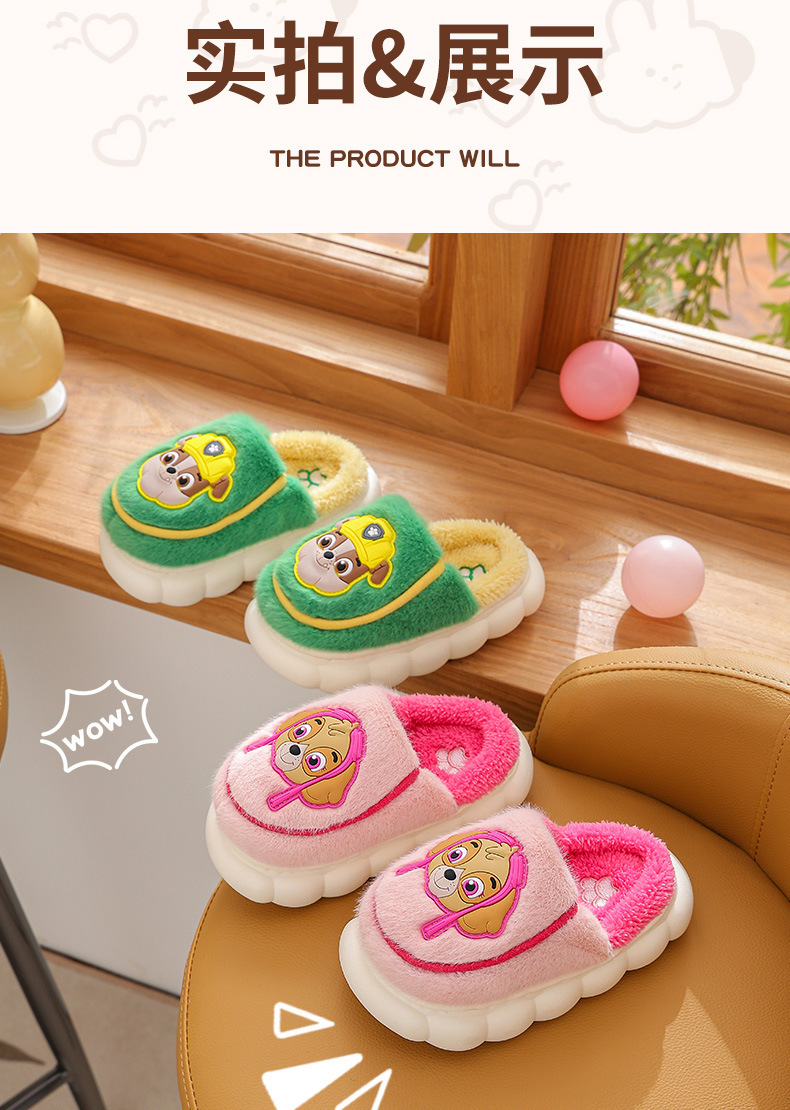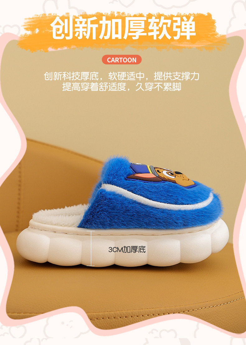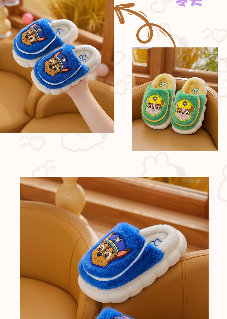 【汪汪队儿童棉拖鞋】冬季新款男童女童室内家居防滑卡通小孩毛毛拖鞋