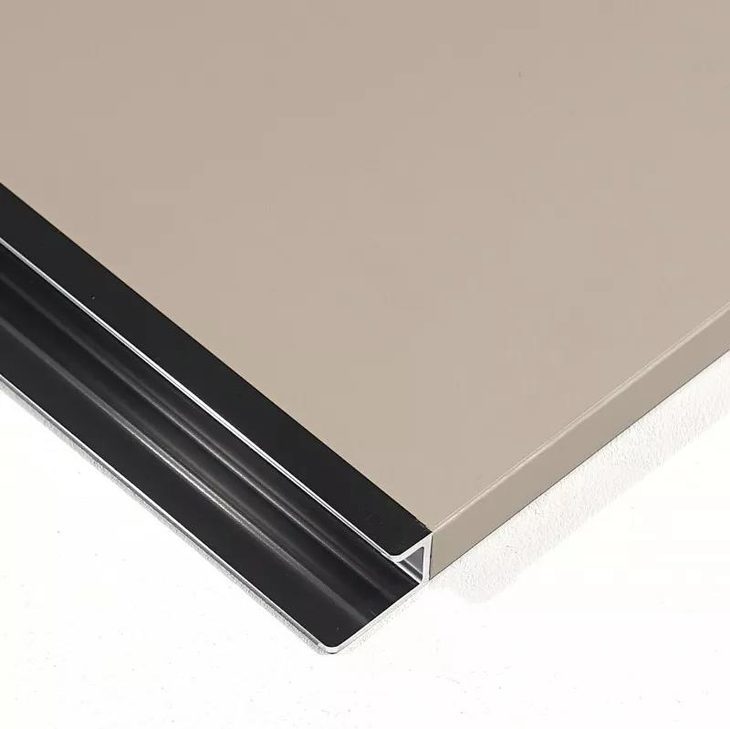 我们有几种隐藏式拉手的样式,这是其中一种。板材裁切后封四边,在装拉手一边用镂铣设备进行开槽,然后将不锈钢拉手嵌入到门板内。后边爱格平面木纹系列里还有一种隐藏式拉手的样式