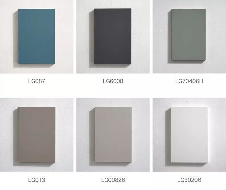 这是我们能提供的门板的颜色种类,需要注意的是,LG70406H是亮光面的,其他五种是哑光面