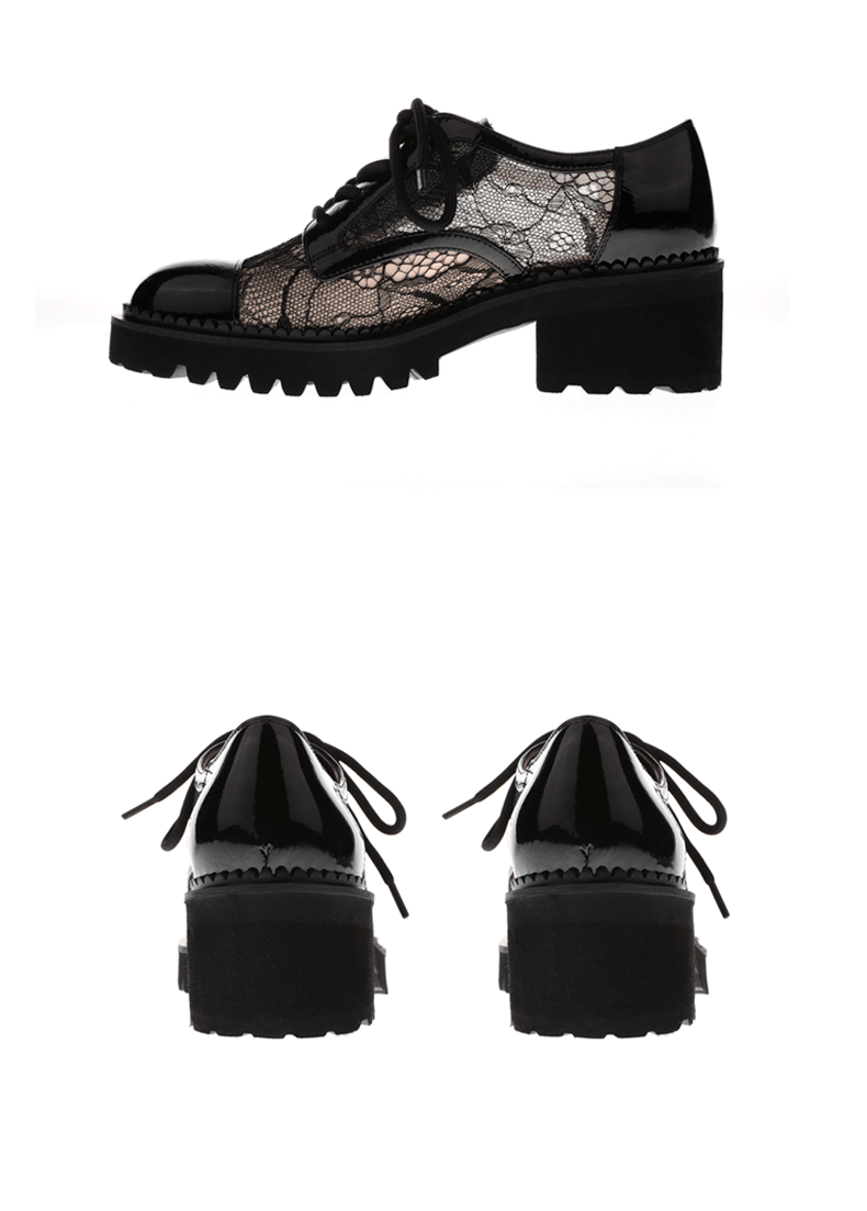 sheme真皮女鞋圆头厚底蕾丝女鞋商务经典系带单鞋