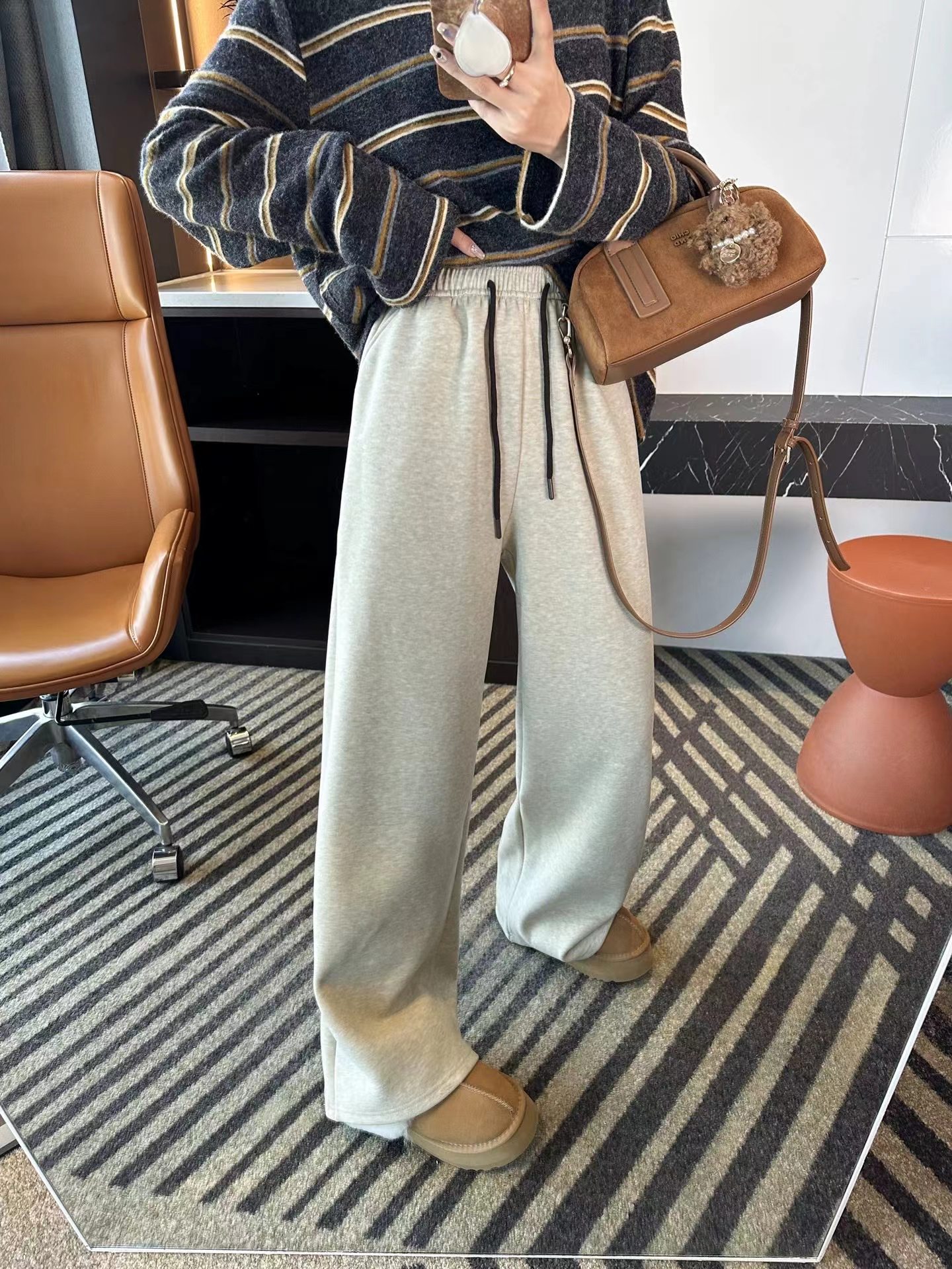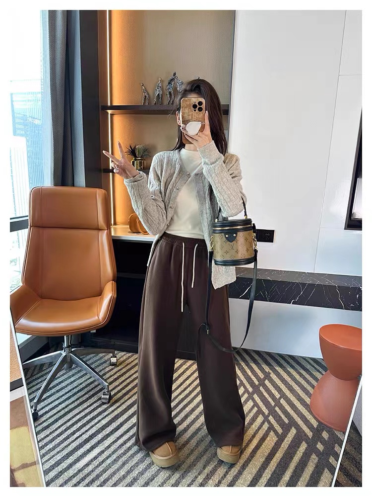 秋冬小暖炉!~加绒糯米休闲裤女2025新款保暖加厚宽松阔腿长裤子,给你们安利这款厚绒阔腿休闲裤,真的絶了版型就是基础款,不挑人,什么身材穿上都好看实穿率ke篙了,冬天搭配各种上衣都hin合适 还有撞色抽丝的设计,te别点睛一点都不觉得违和,反而让裤子geng有liang点啦面料是小糯米面料,内里还复合了羊绒那叫一个温暖,上身就跟裹着小火炉似的S而且是阔腿的版型,穿上无拘无束的,活动起来te别自在,真的薆了!
