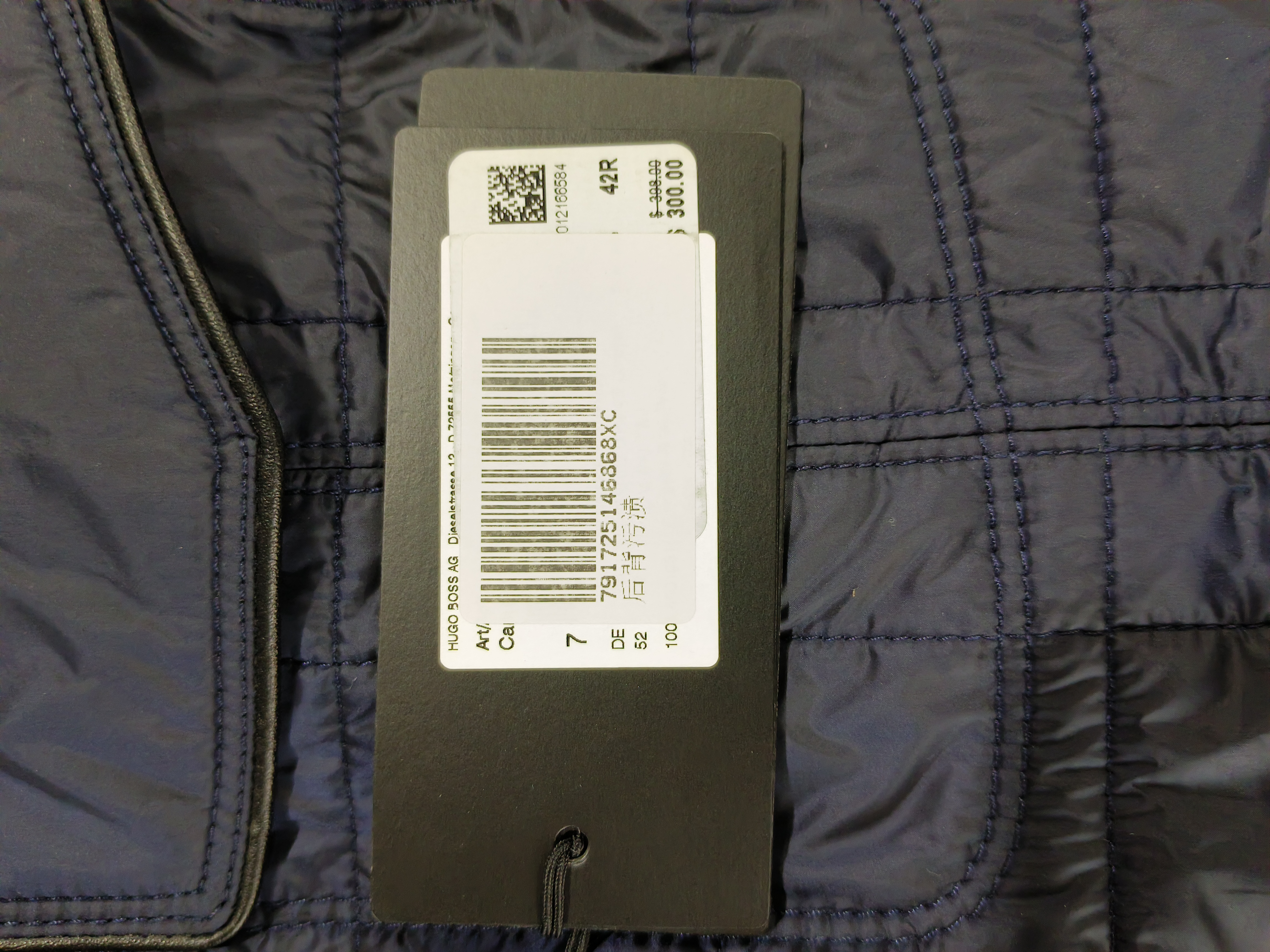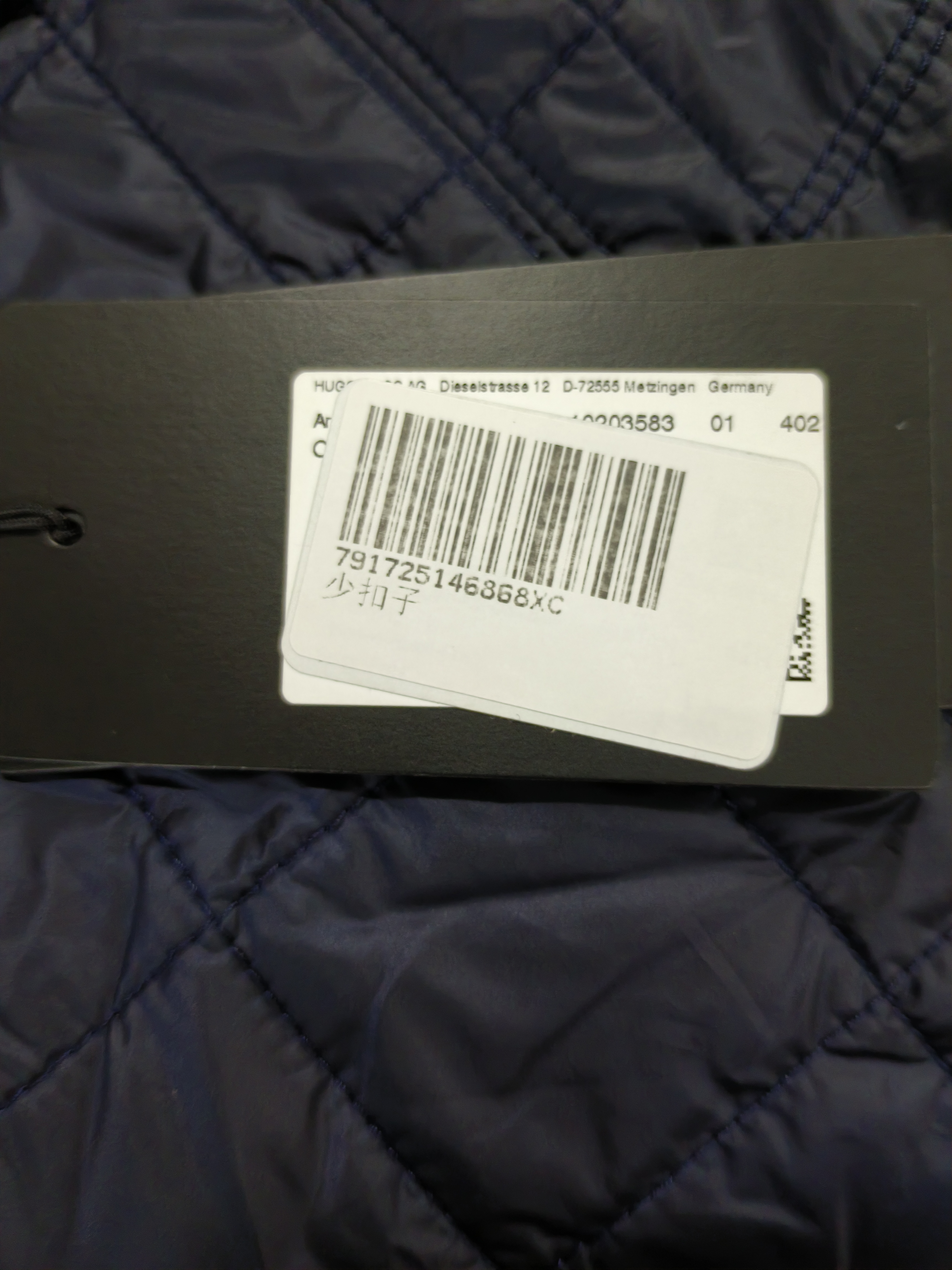 瑕疵HUGO BOSS 男士黑标假两件夹棉休闲长袖衍缝夹克外套