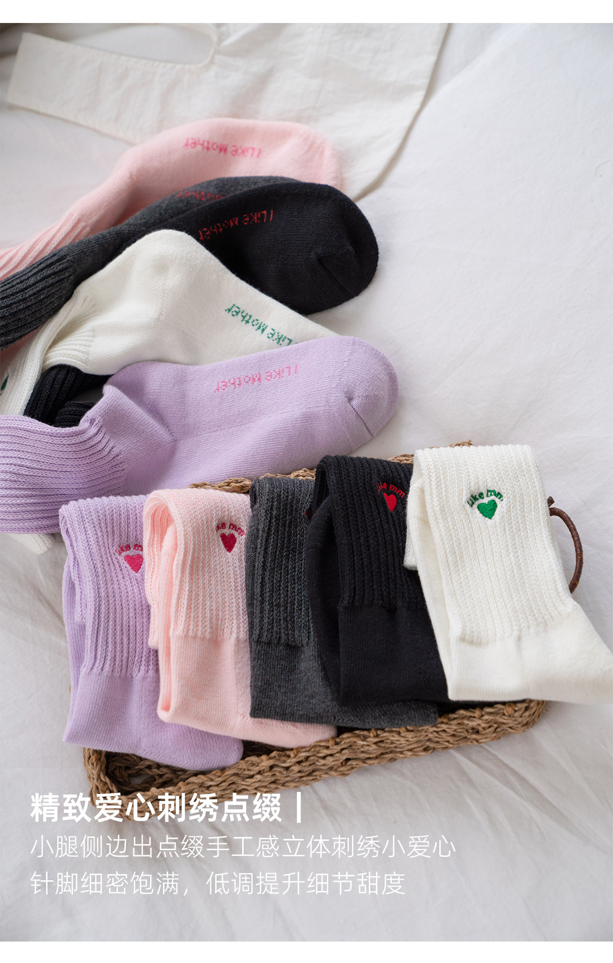 靴下物压力小腿袜2025新款爱心刺绣长筒纯色弹力中长筒设计感秋季