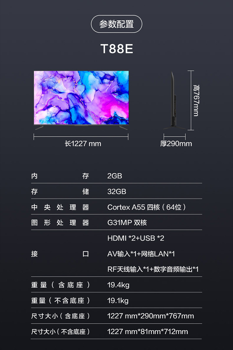 【咨询客服有惊喜】TCL55T88E55英寸全场景AI声控QLED量子点智屏电视