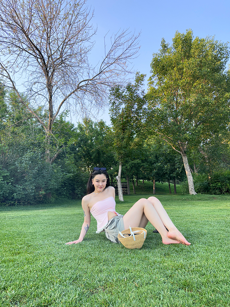 倩妮迪月亮nv王银白色小香风吊带包臀裙套装