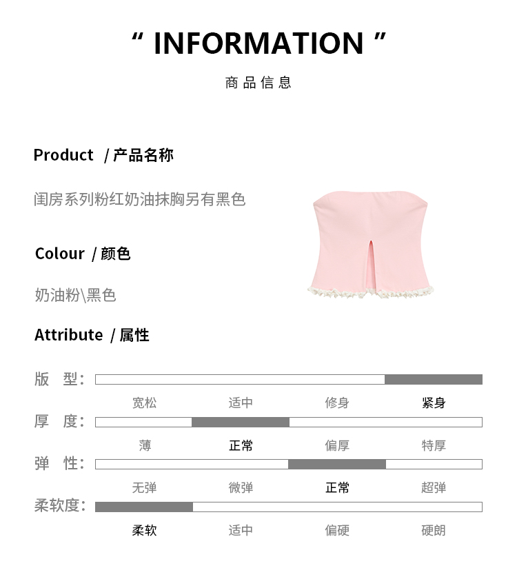 DUO智仙生 闺房系列粉红奶油抹胸另有黑色