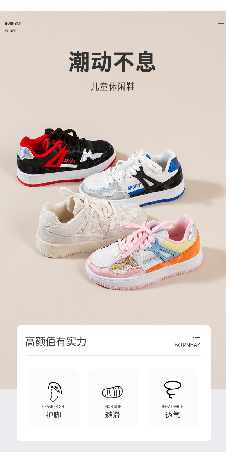 贝贝怡儿童小白鞋秋季女童男童鞋子休闲白色板鞋学生鞋223X413