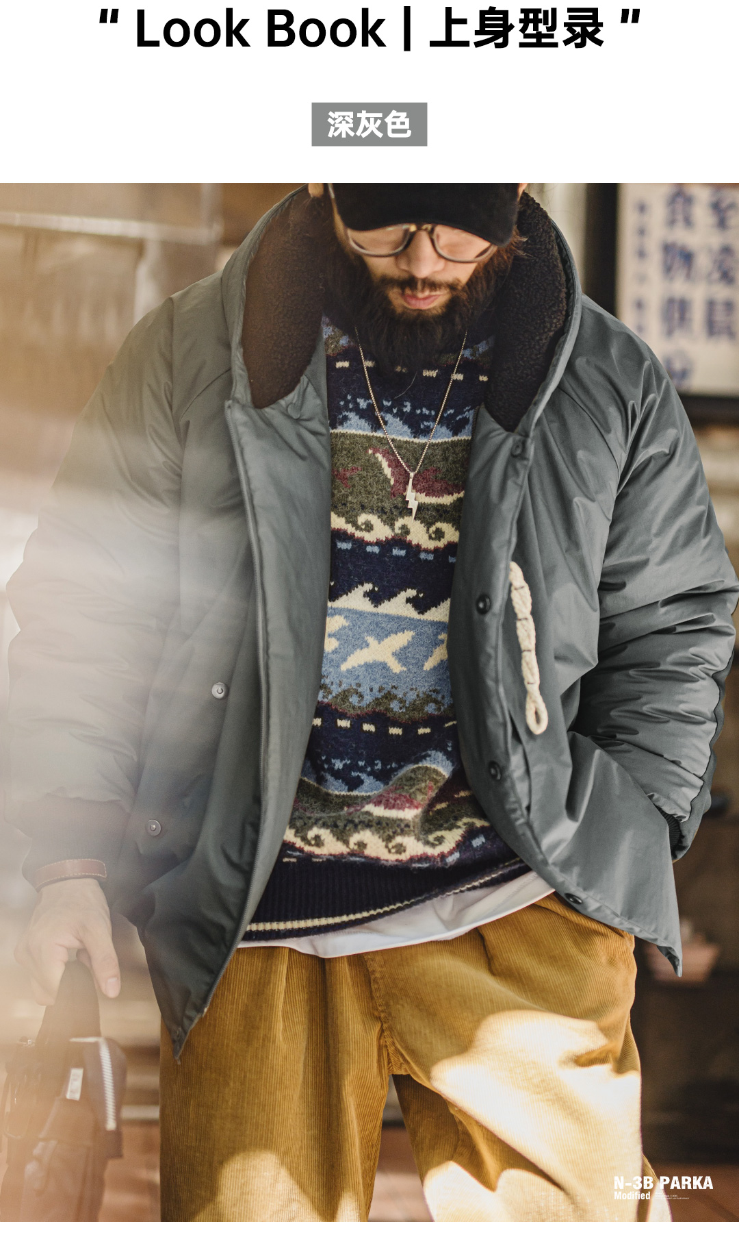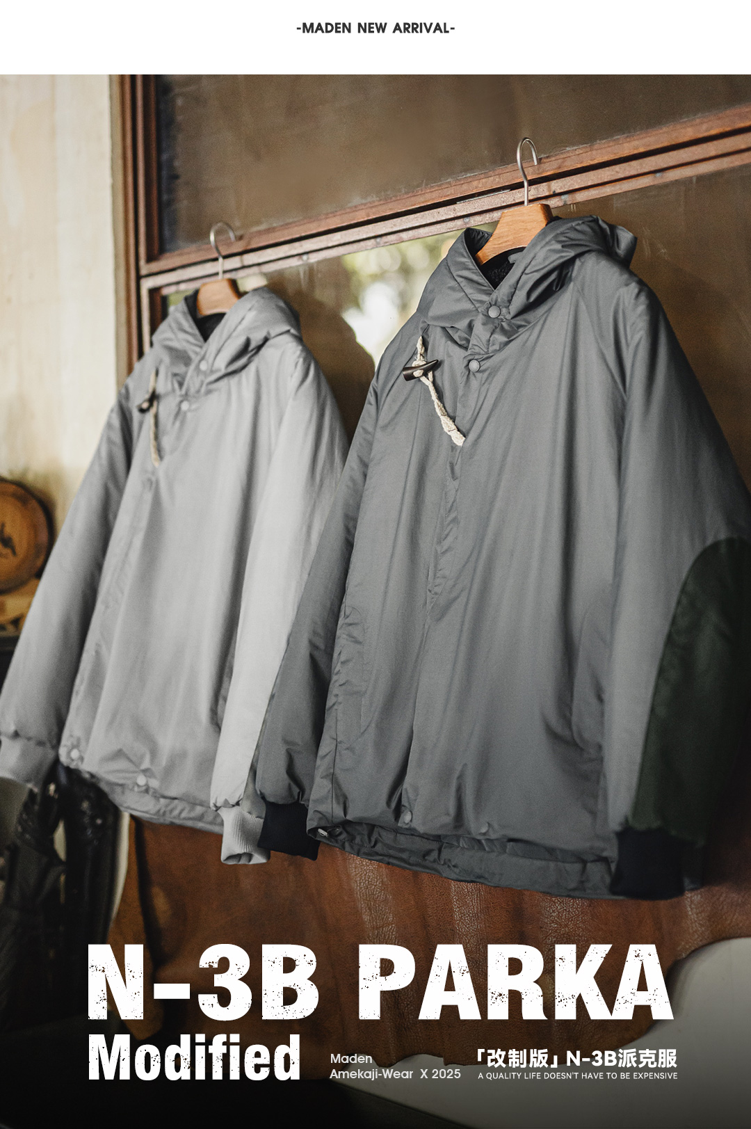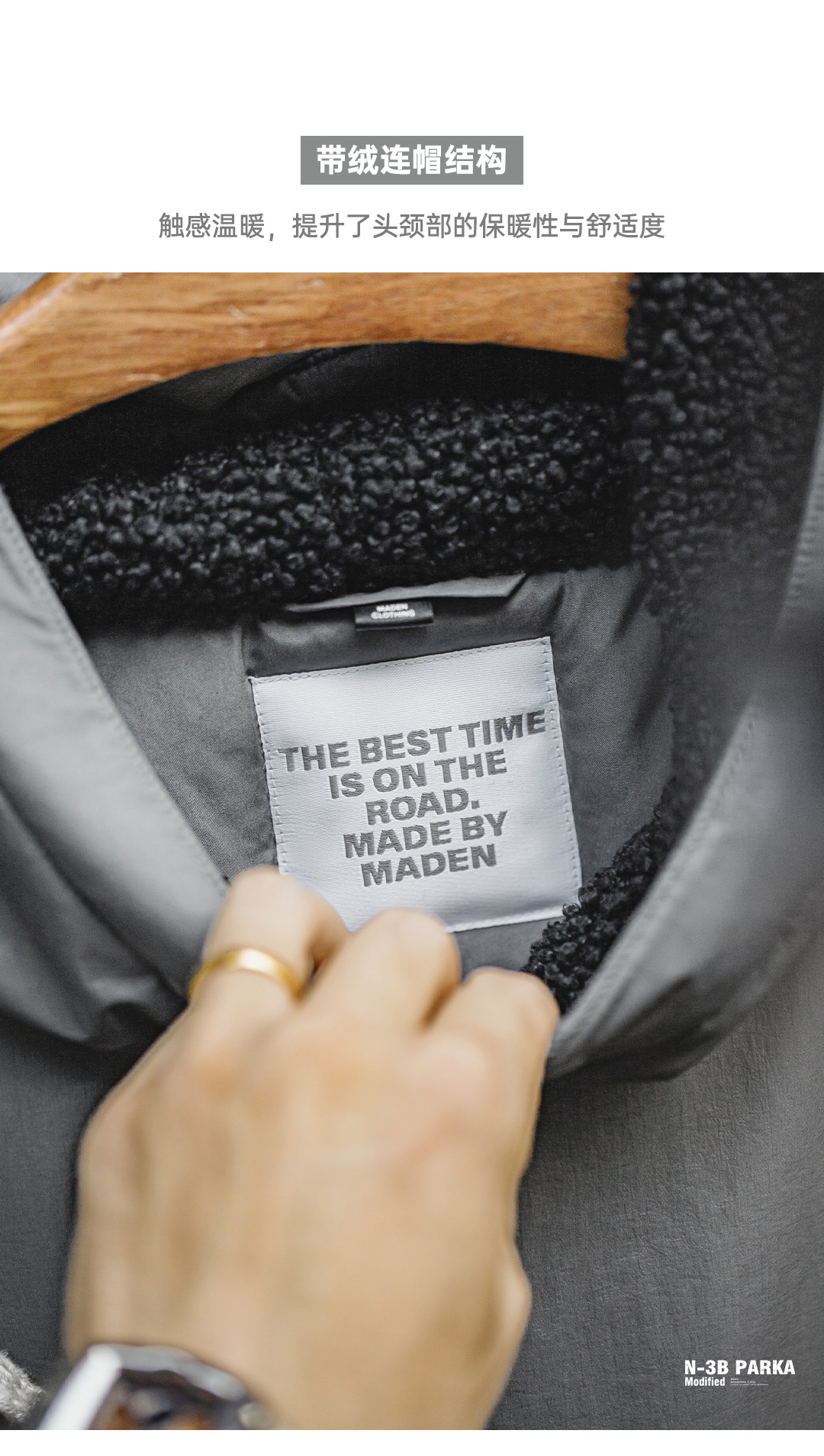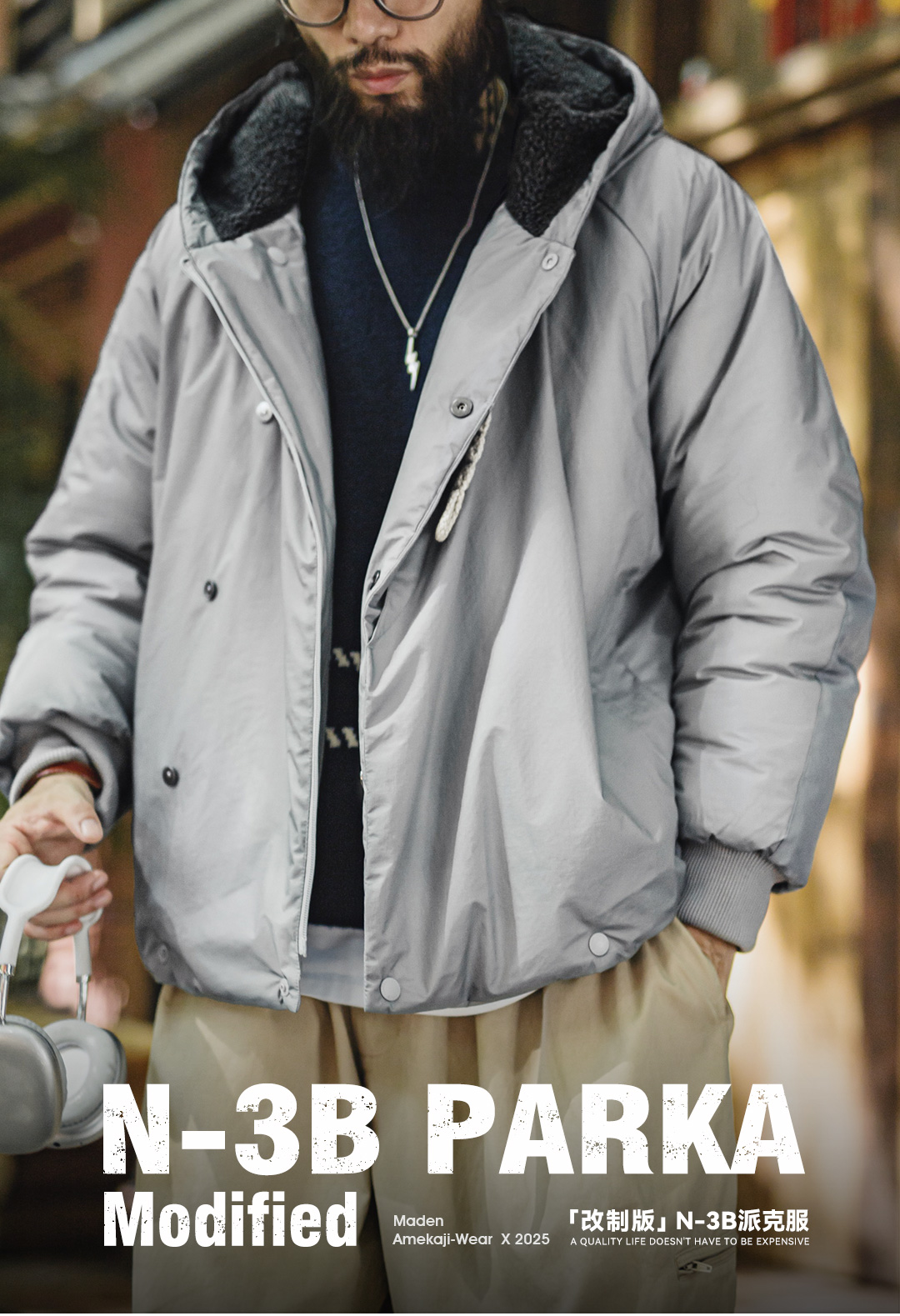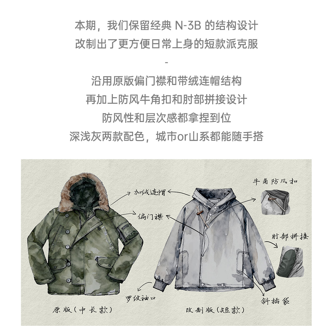 马登工装美式N3B灰色派克服棉服外套短款连帽加厚保暖棉衣男秋冬