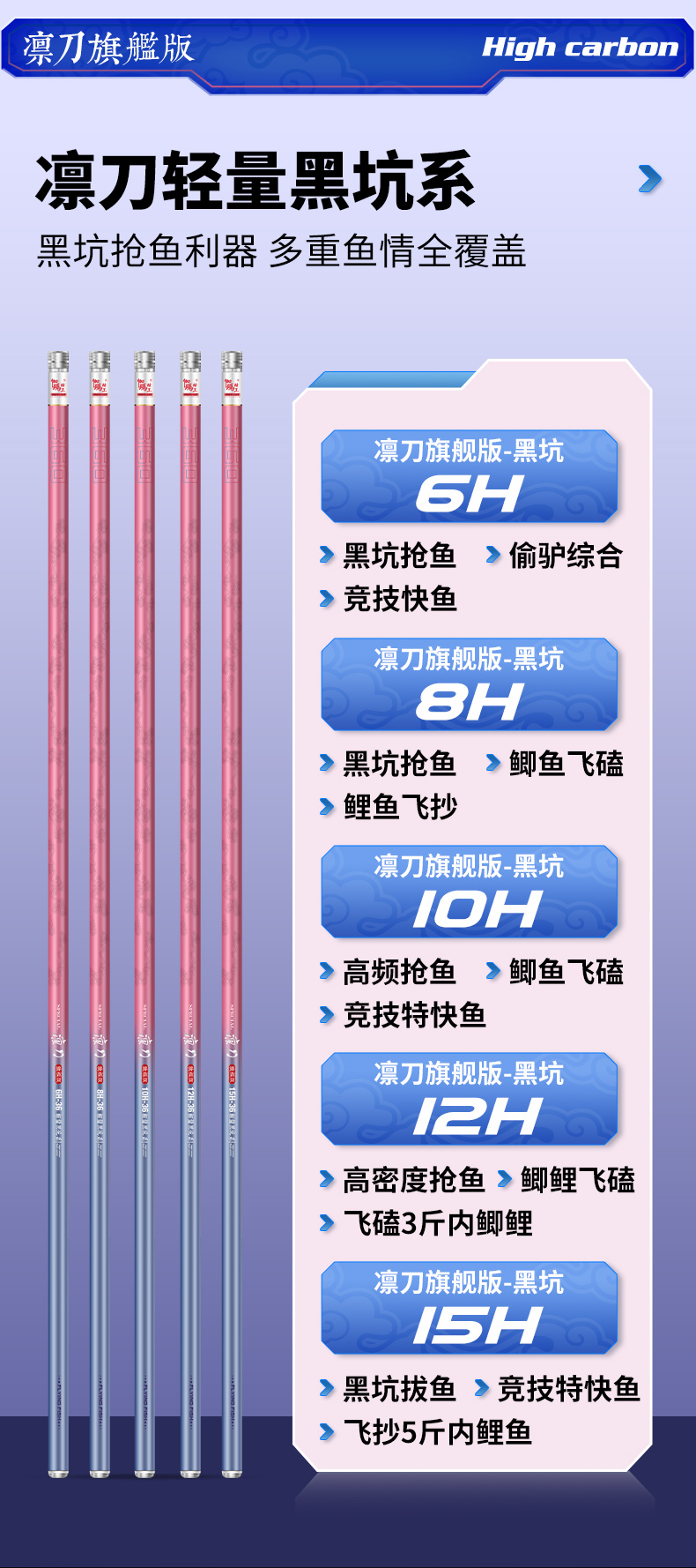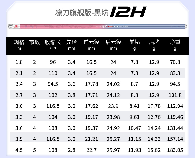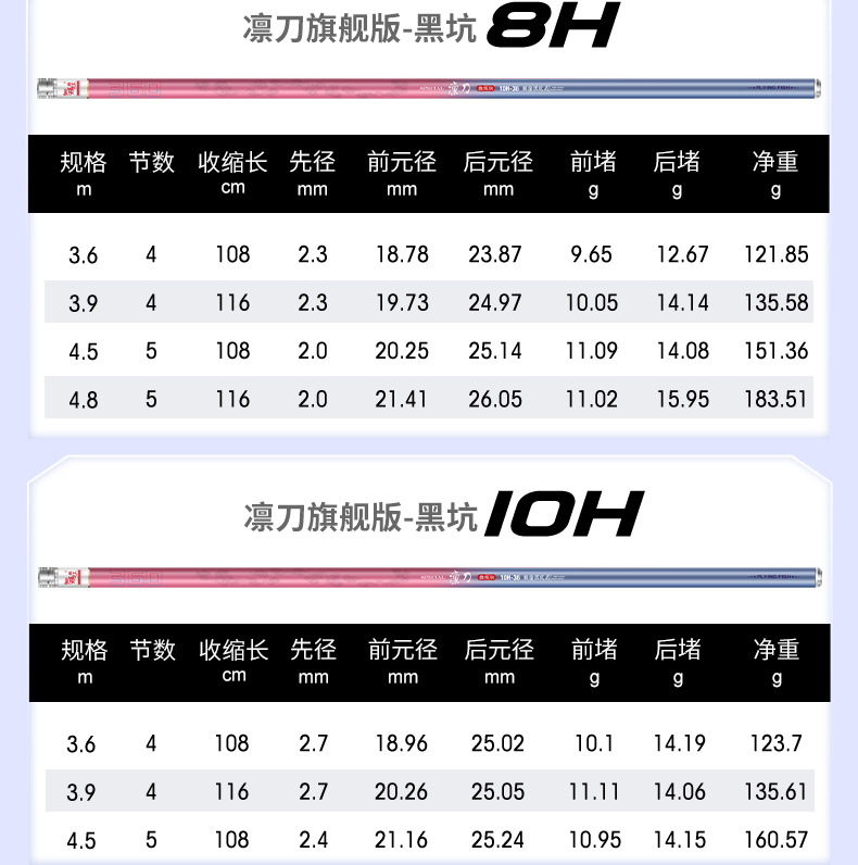 伽玛精工凛刀黑坑旗舰版鱼竿飞抄飞磕钓鱼竿68101215H黑坑钓竿