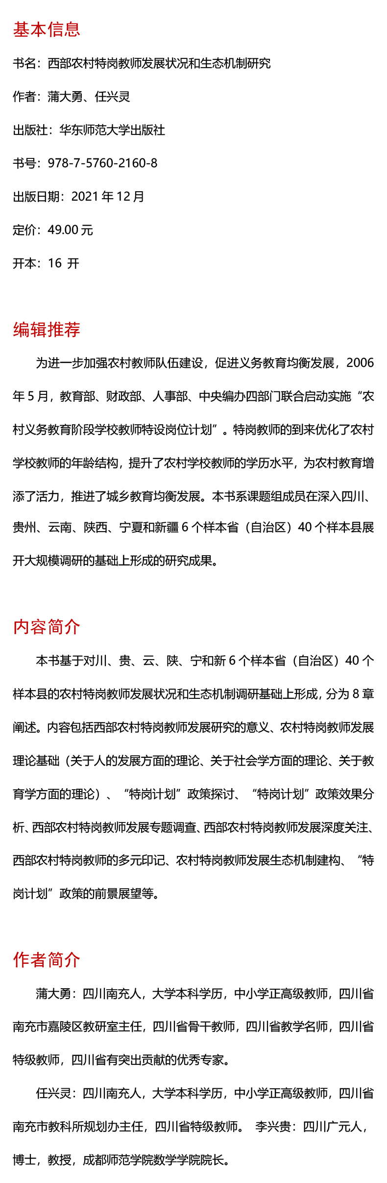 西部农村特岗教师发展状况和生态机制研究 加强农村教师队伍建设