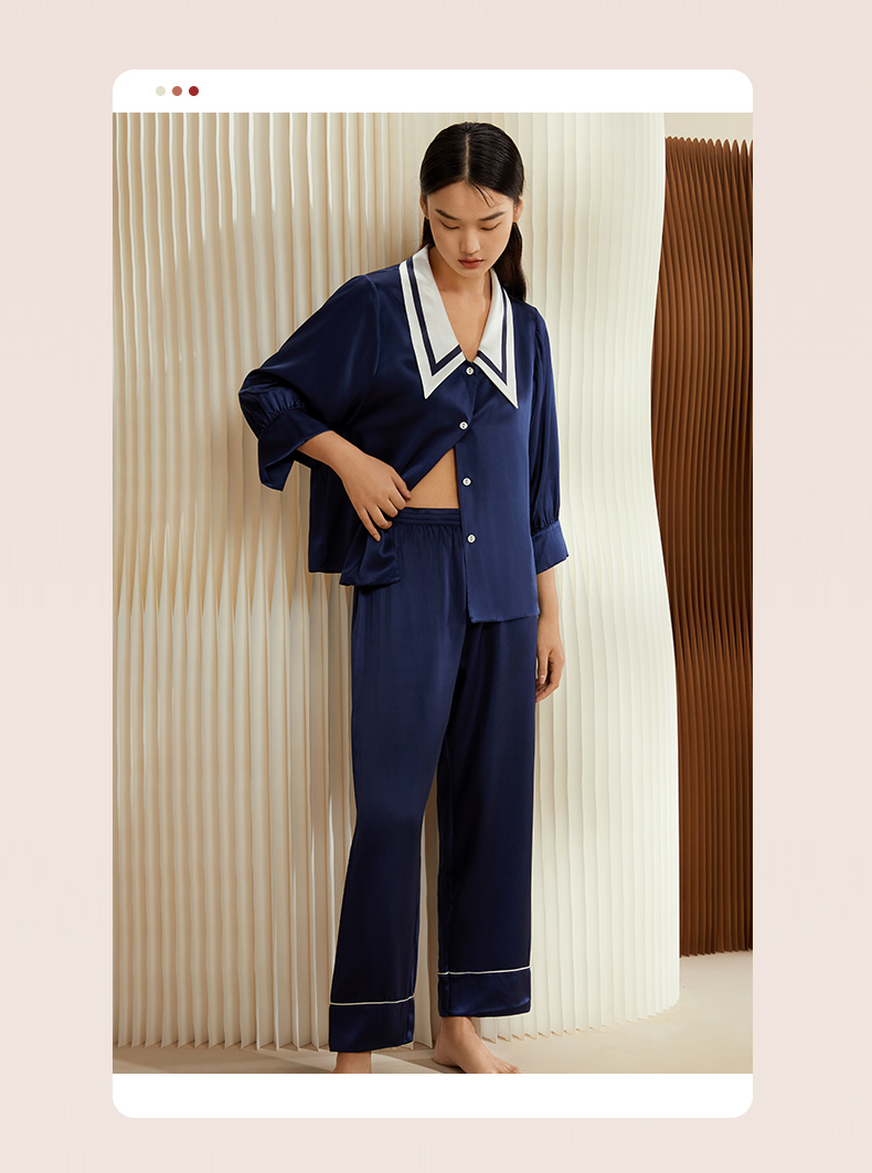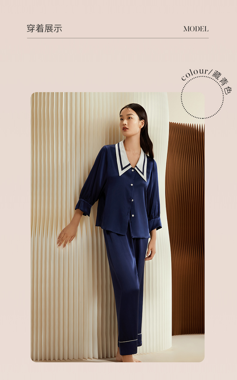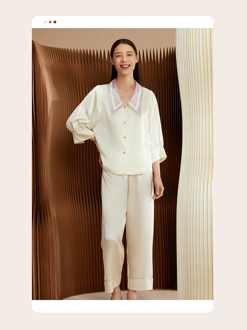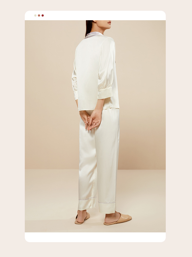 金三塔重磅真丝睡衣女时尚尖领100%桑蚕丝凉感宽松家居服套装 YSFCB206
