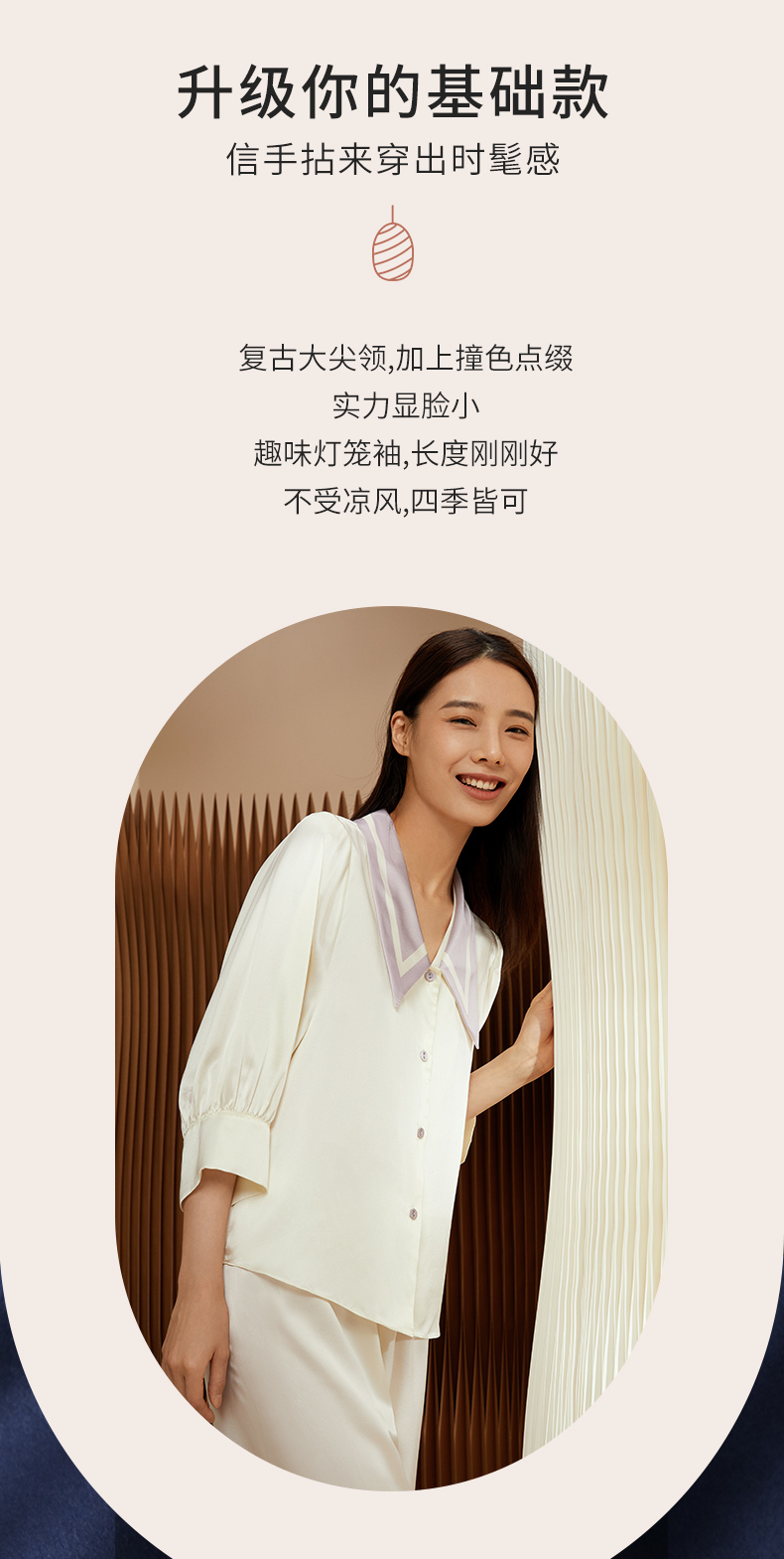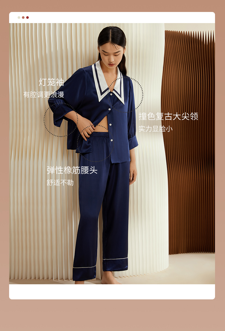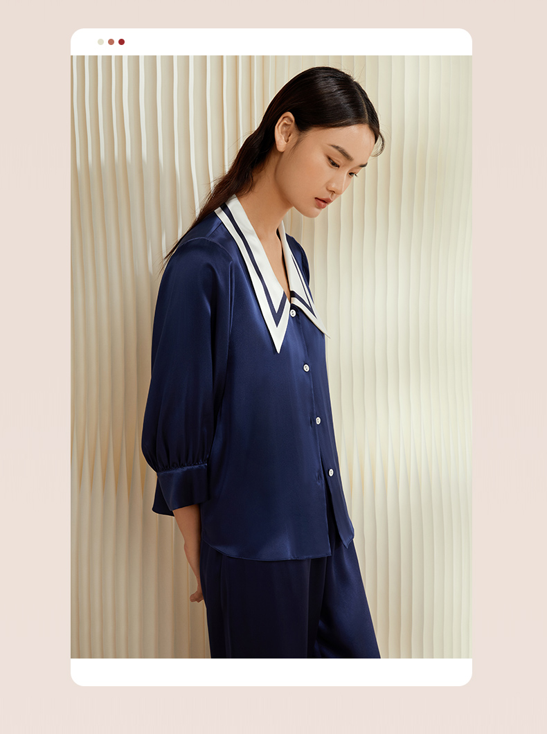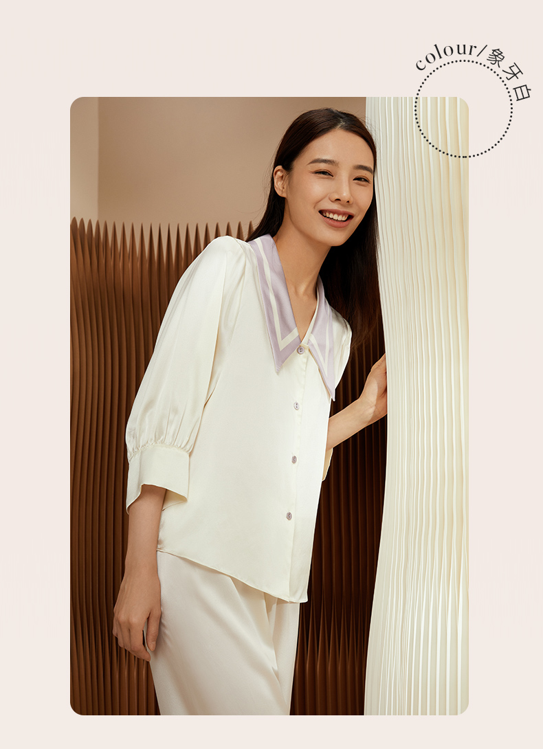 金三塔重磅真丝睡衣女时尚尖领100%桑蚕丝凉感宽松家居服套装 YSFCB206