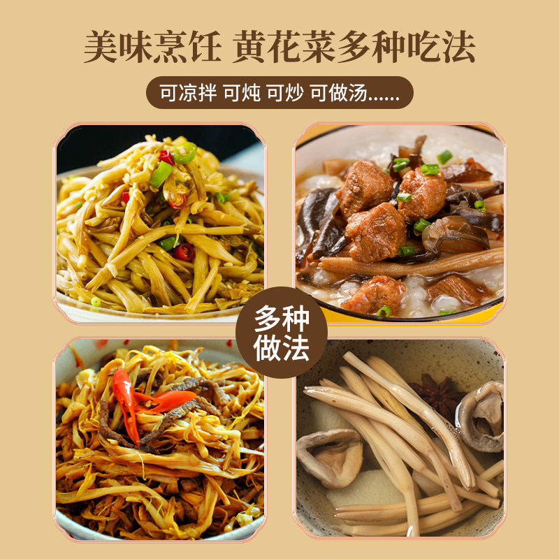 人工晾晒的有机黄花菜,颜色自然金黄,个头均匀,根根分明,气味清香,也没有杂物,营养又百搭,能炖能炒,吃火锅也可以丢进一把,鲜美!