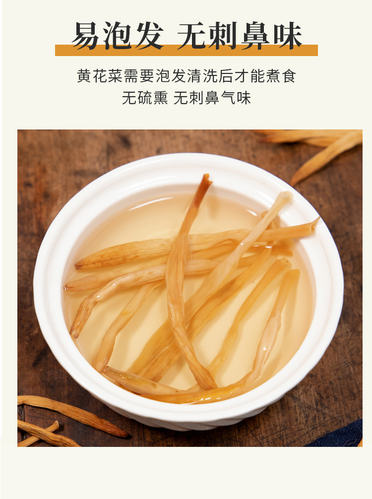 市面上黄花菜多为干菜,新鲜的很少见,这是因为鲜黄花菜中含有大量秋水仙碱,处理不当容易中毒。但也因此,很多不良商家为了节省时间,降低成本,采用硫磺熏制,对健康大有坏处。而今天的这袋黄花菜就可以放心吃吃啦,来自黑龙江伊春,并且是有机种植,自然晾晒,也不用农药化肥。