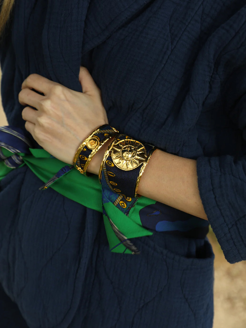 订购14周到|AN-NEE-LUNE-绿调 波西米亚 2cm 丝巾手镯[法国设计师]