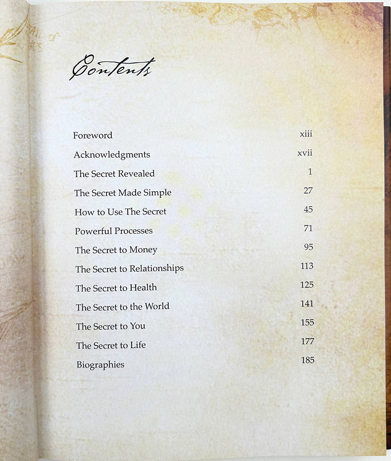 The Secret contains wisdom from modern-day teachers—men and women who have used it to achieve health, wealth, and happiness. By applying the knowledge ofThe Secret, they bring to light compelling stories of eradicating disease, acquiring massive wealth, overcoming obstacles, and achieving what many would regard as impossible.