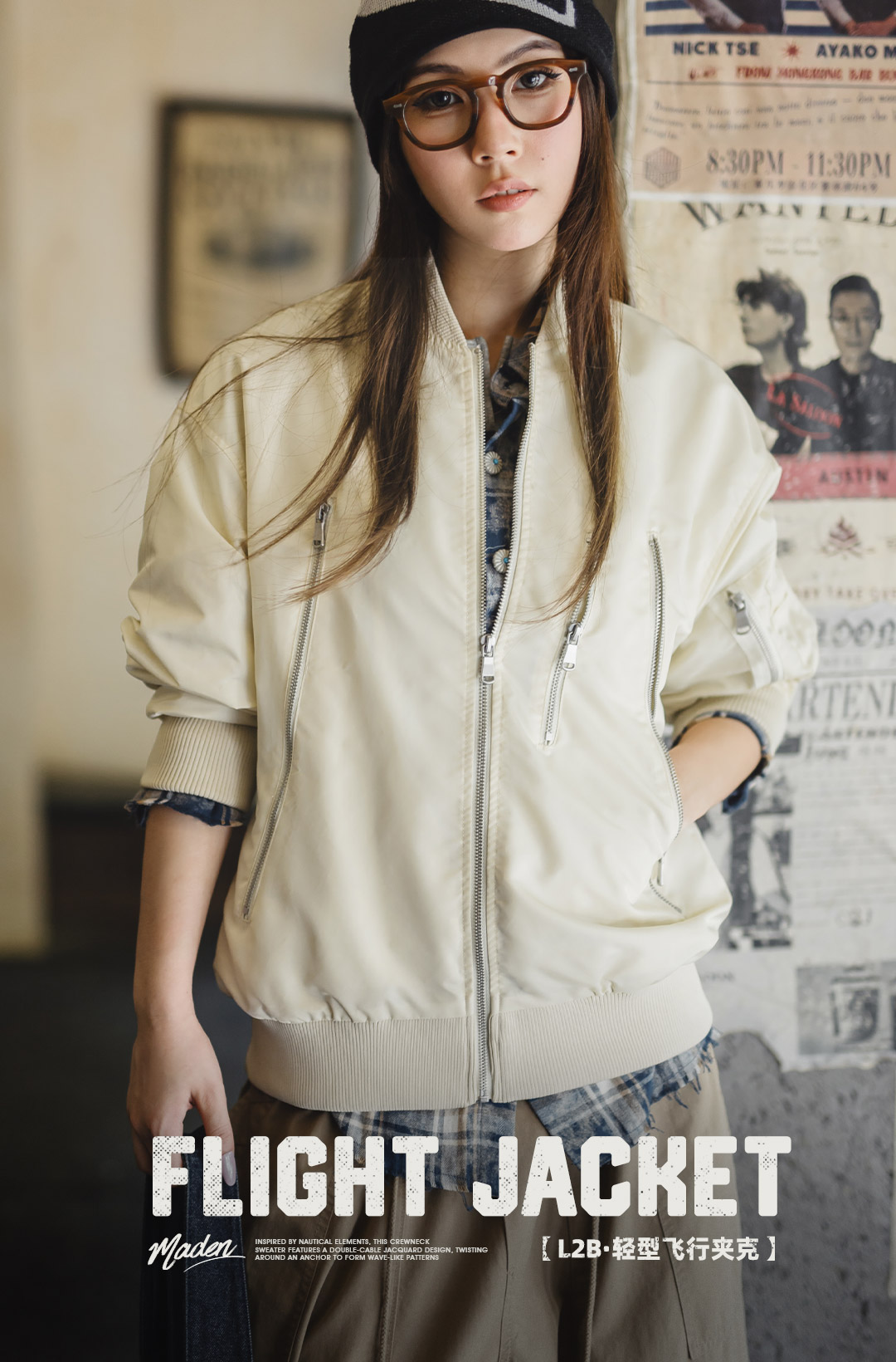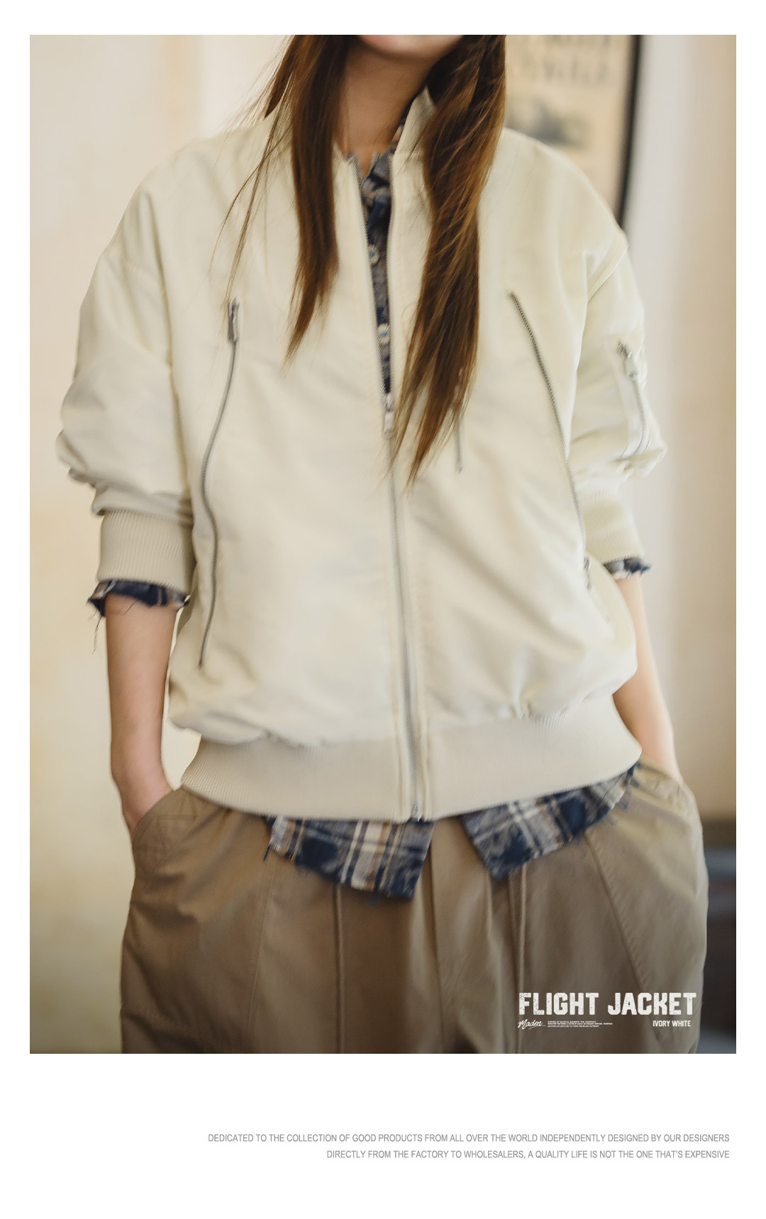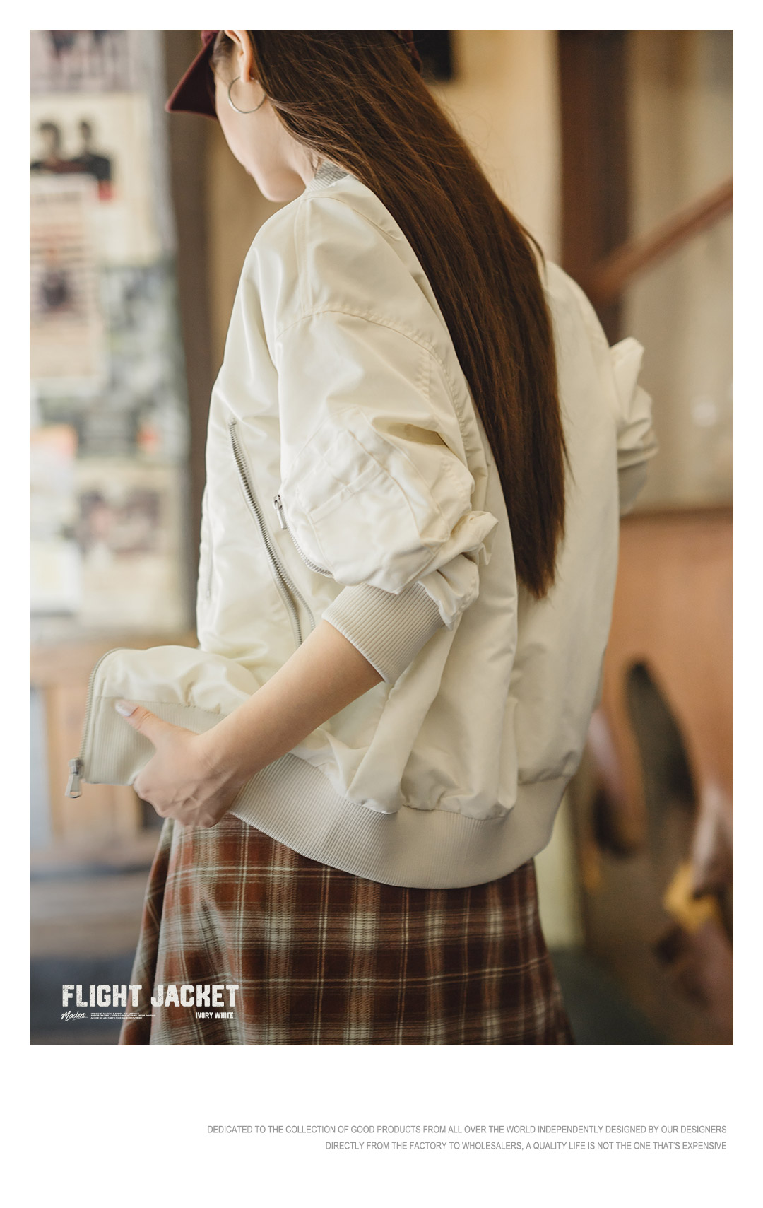 马登美式复古白色宽松棒球服立领飞行员工装夹克休闲外套上衣女秋