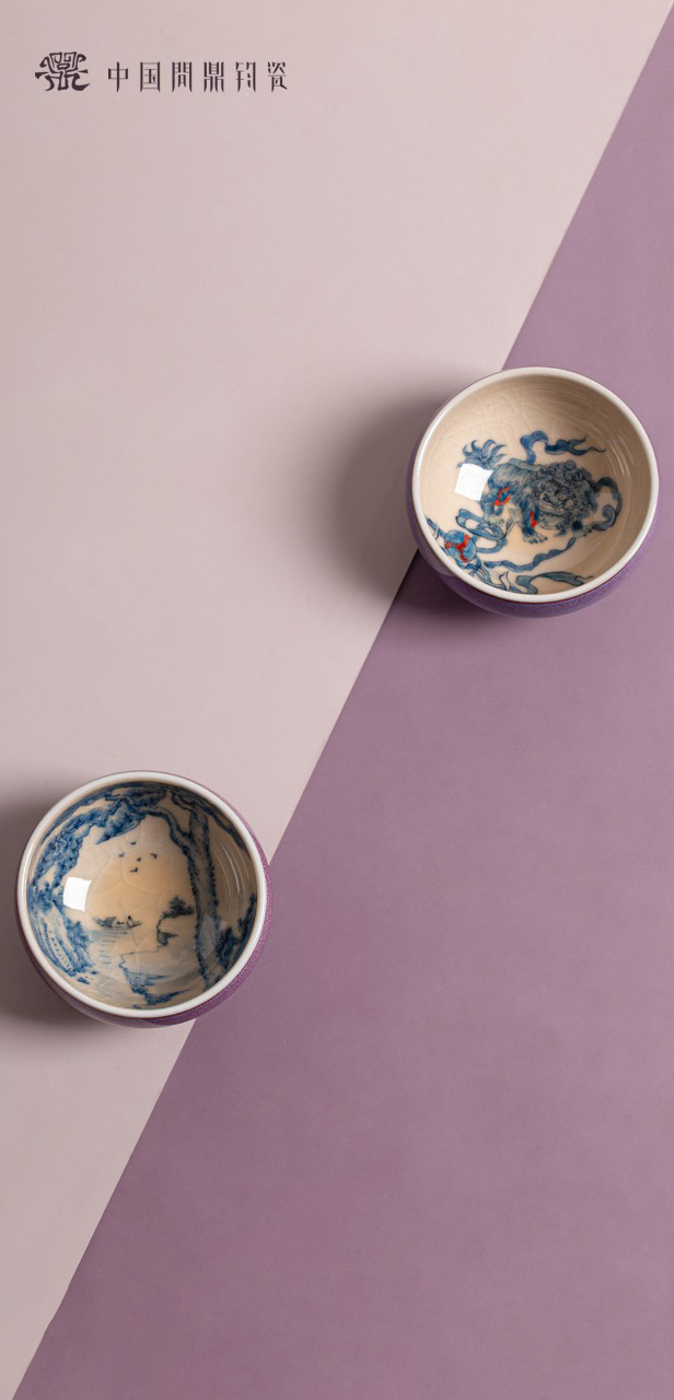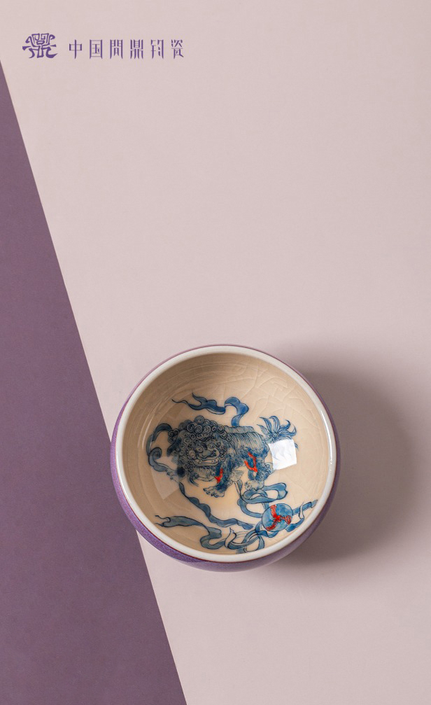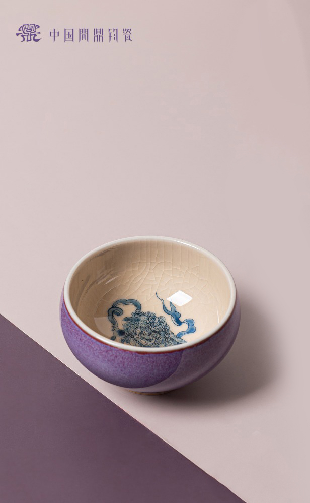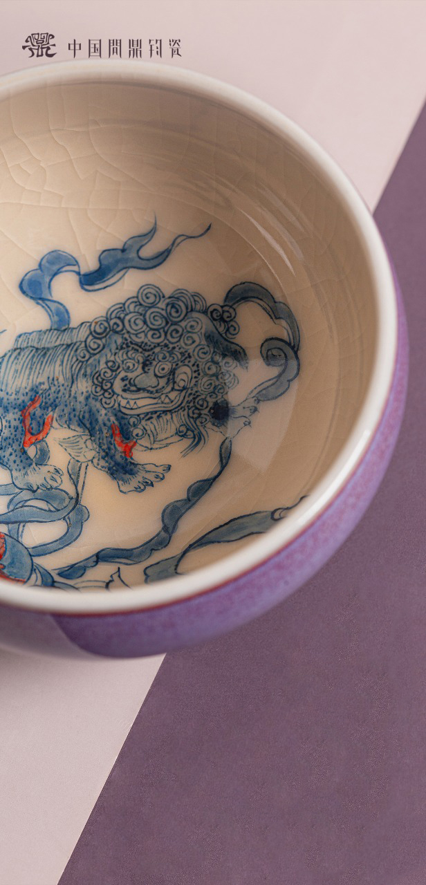 问鼎钧瓷鹅黄青花平口杯(雄狮踏鞠)(缺货)