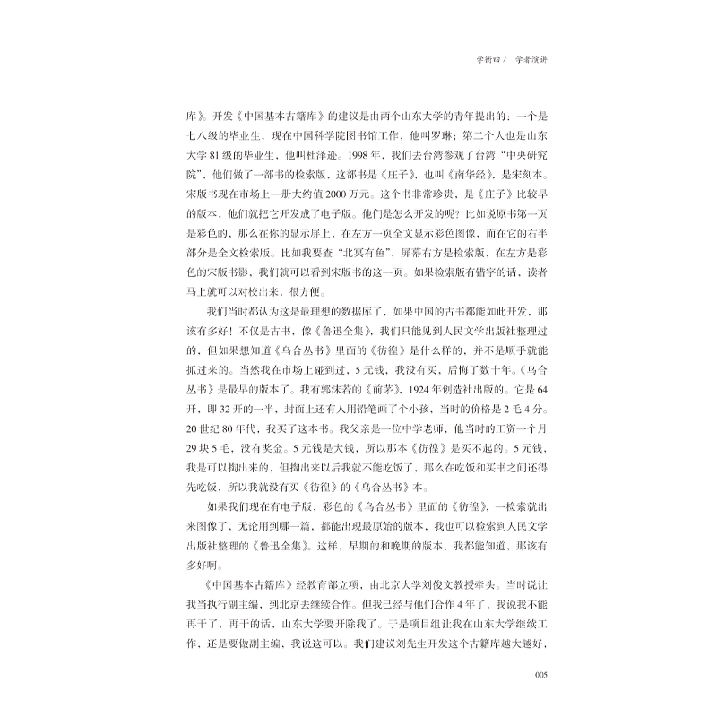 数字人文专题以何;半部《论语》治天下?基于文档向量相似性的《论语》篇章结构分析(杨浩、杨明仪、刘千慧、王军)现代文学研究的数据库和网络资源基于目录学的考察(王贺)古代文献研究数字人文课程的实践与思考(李林芳)