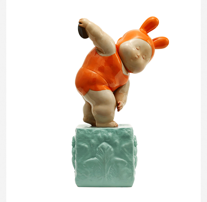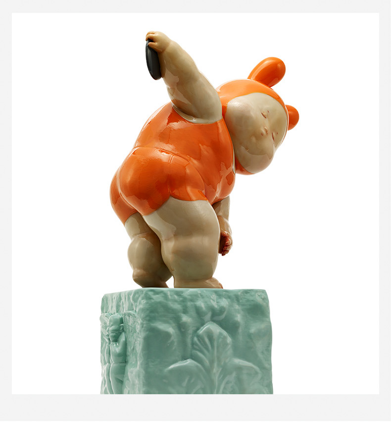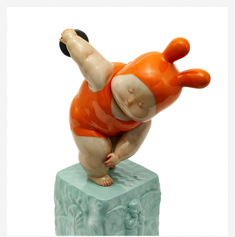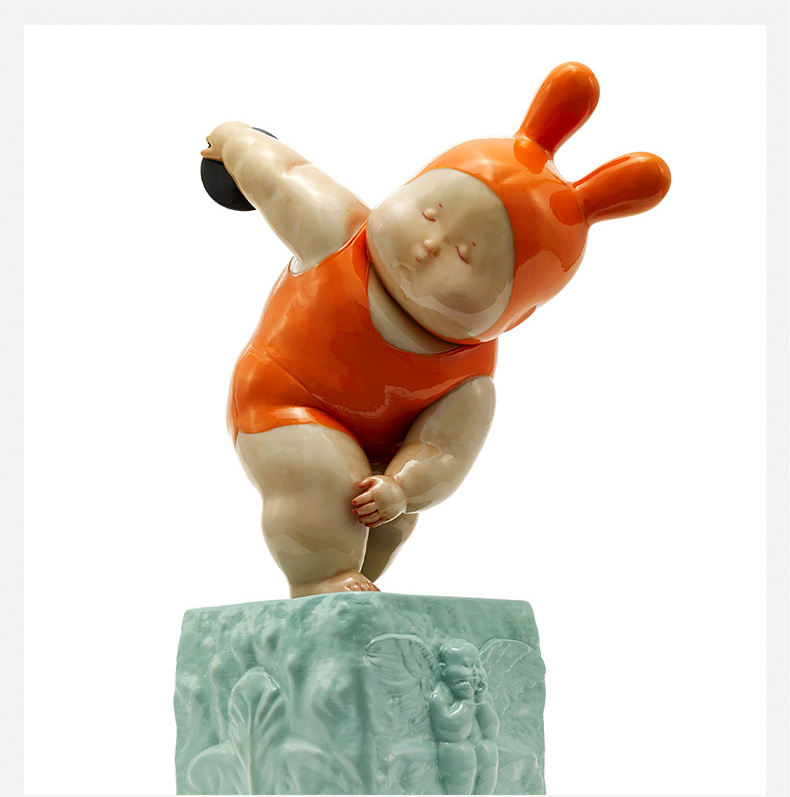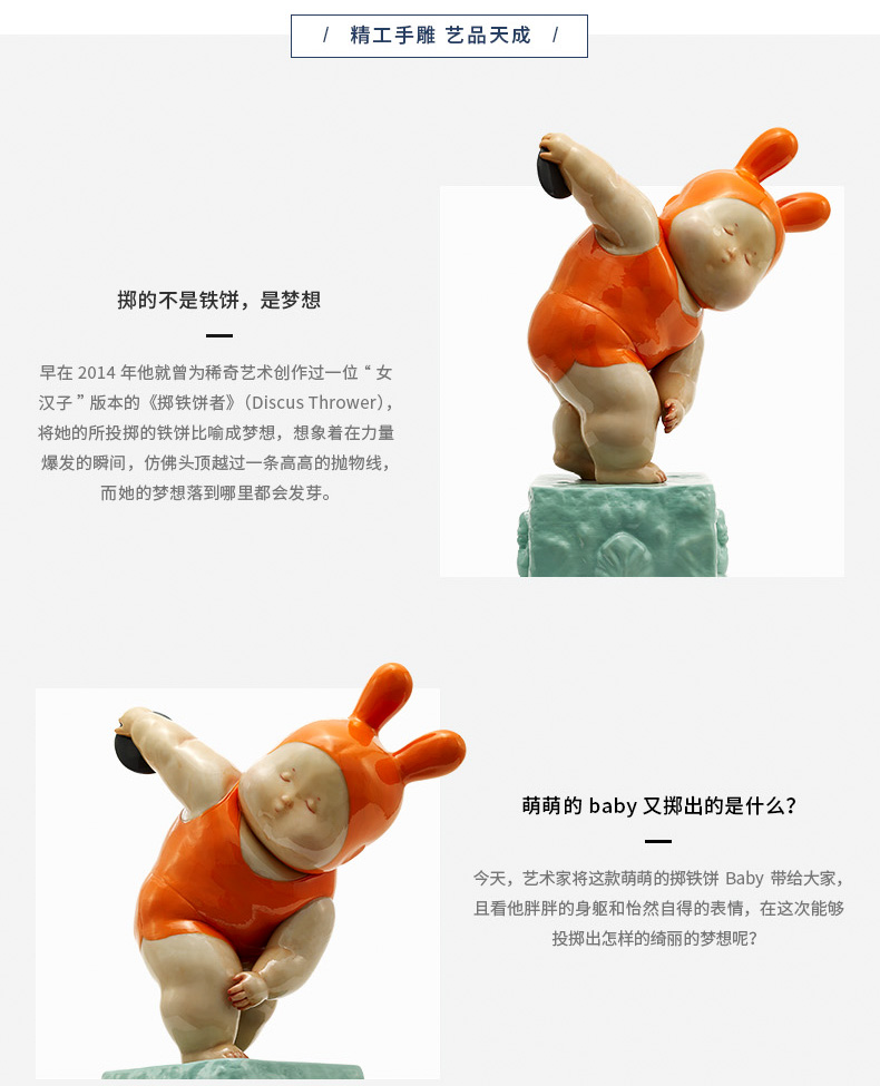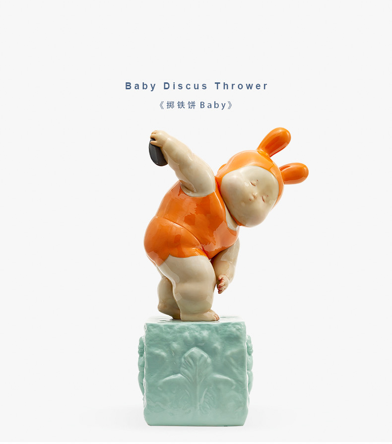 稀奇艺术瞿广慈雕塑《掷铁饼baby》可爱桌面艺术品摆件