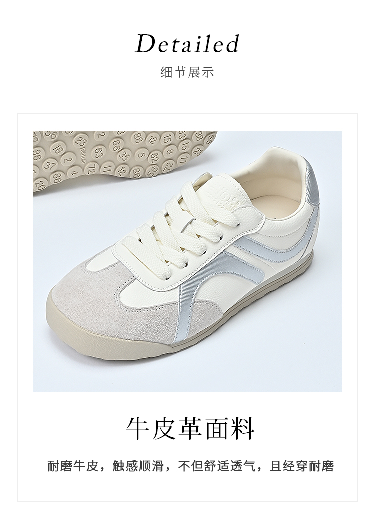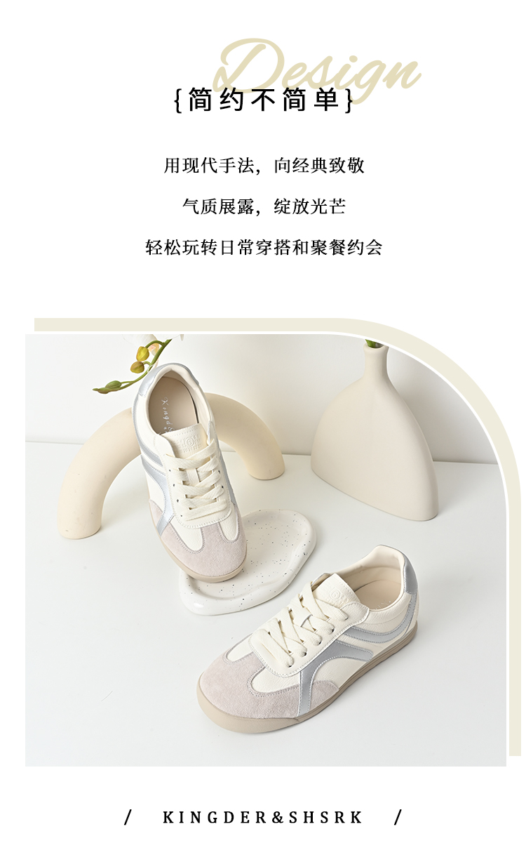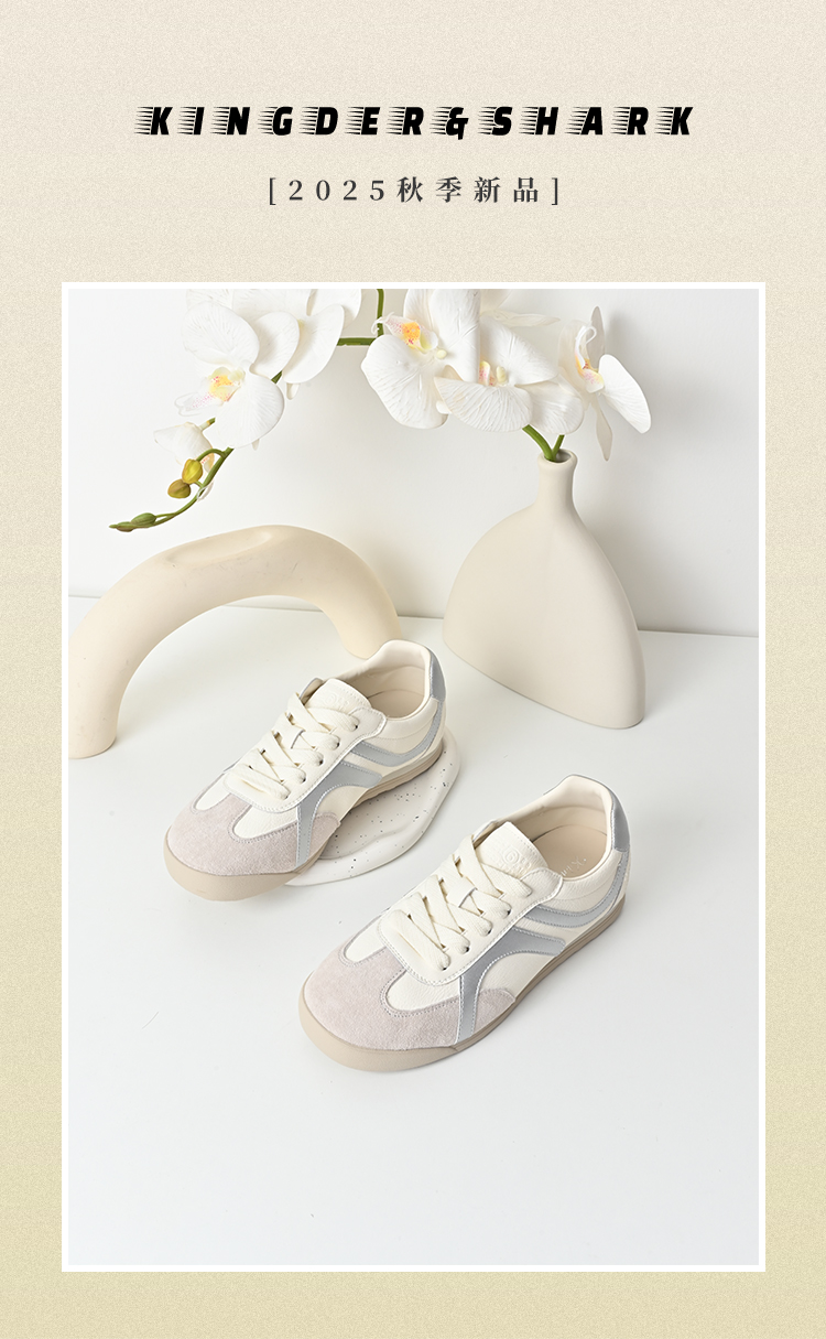 经典鲨2025秋专柜款牛皮革时尚拼色系带潮流休闲鞋阿甘鞋女KW313-537091